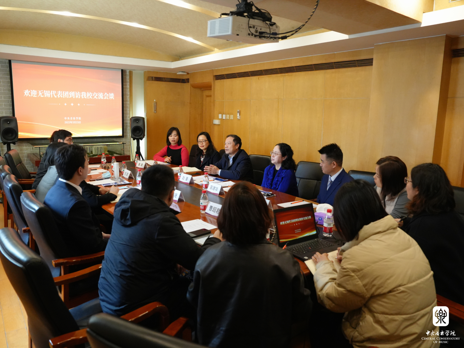 党委学生工作部副部长叶冬梅,就业指导中心副主任崔颖和无锡市委宣传部文艺处副处长曹超君,高新区党工委(新吴区委)宣传部副部长赵俊,无锡交响乐团音乐指导、中国交响乐团驻团作曲家、广西交响乐团驻团作曲李劭晟,无锡交响乐团常务副团长、AC米兰中文官网北京现代音乐节前执行总监尹锋参加了此次会谈。