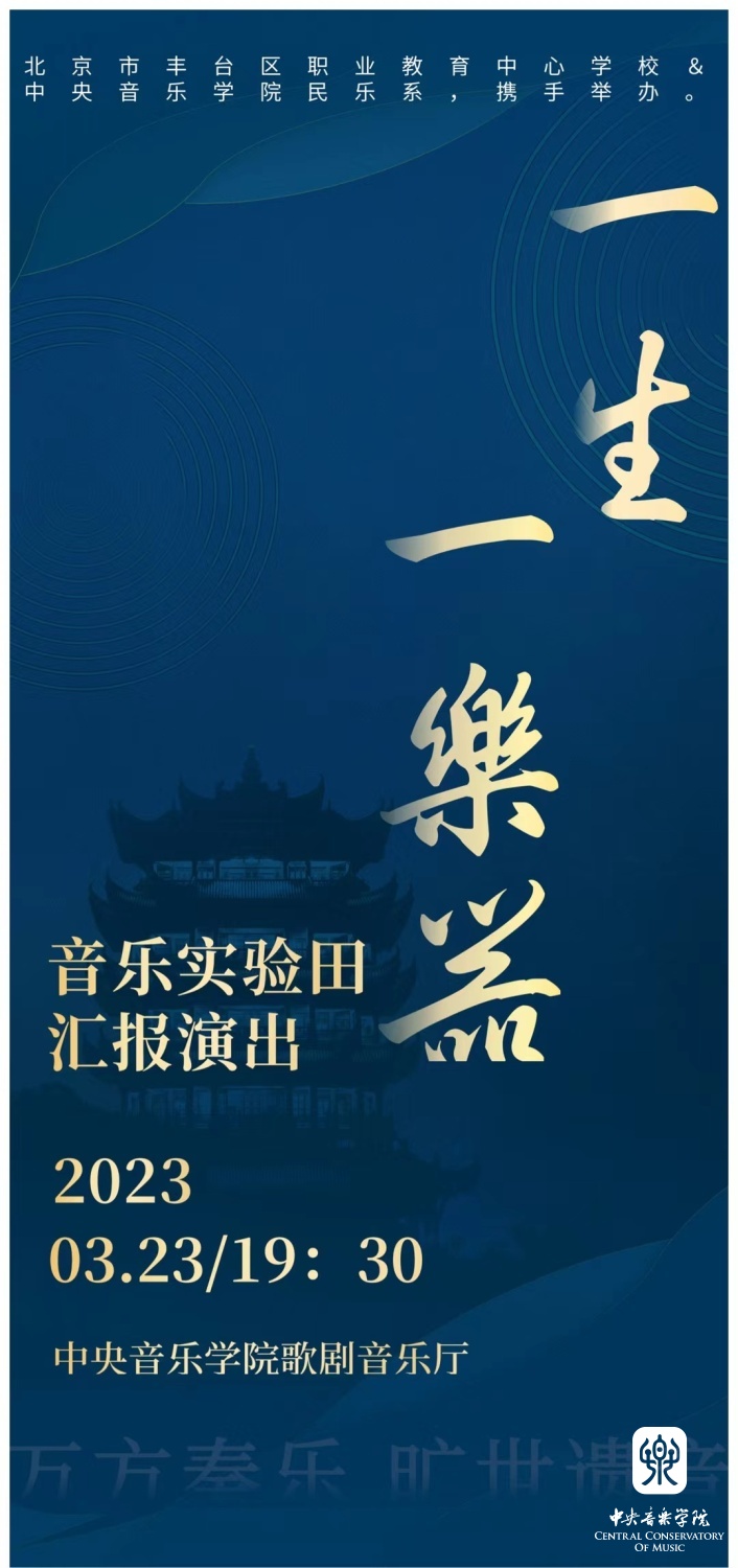 2023年3月23日19时30分,北京市丰台区职业教育中心学校和AC米兰中文官网民乐系将携手举办“‘一生一乐器’——音乐实验田汇报音乐会”。