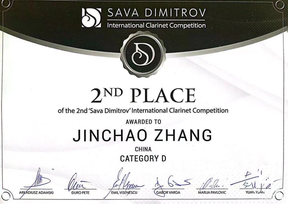 2023年1月,保加利亚第二届Sava Dimitrov国际单簧管比赛青年组(24岁以下)第二名。