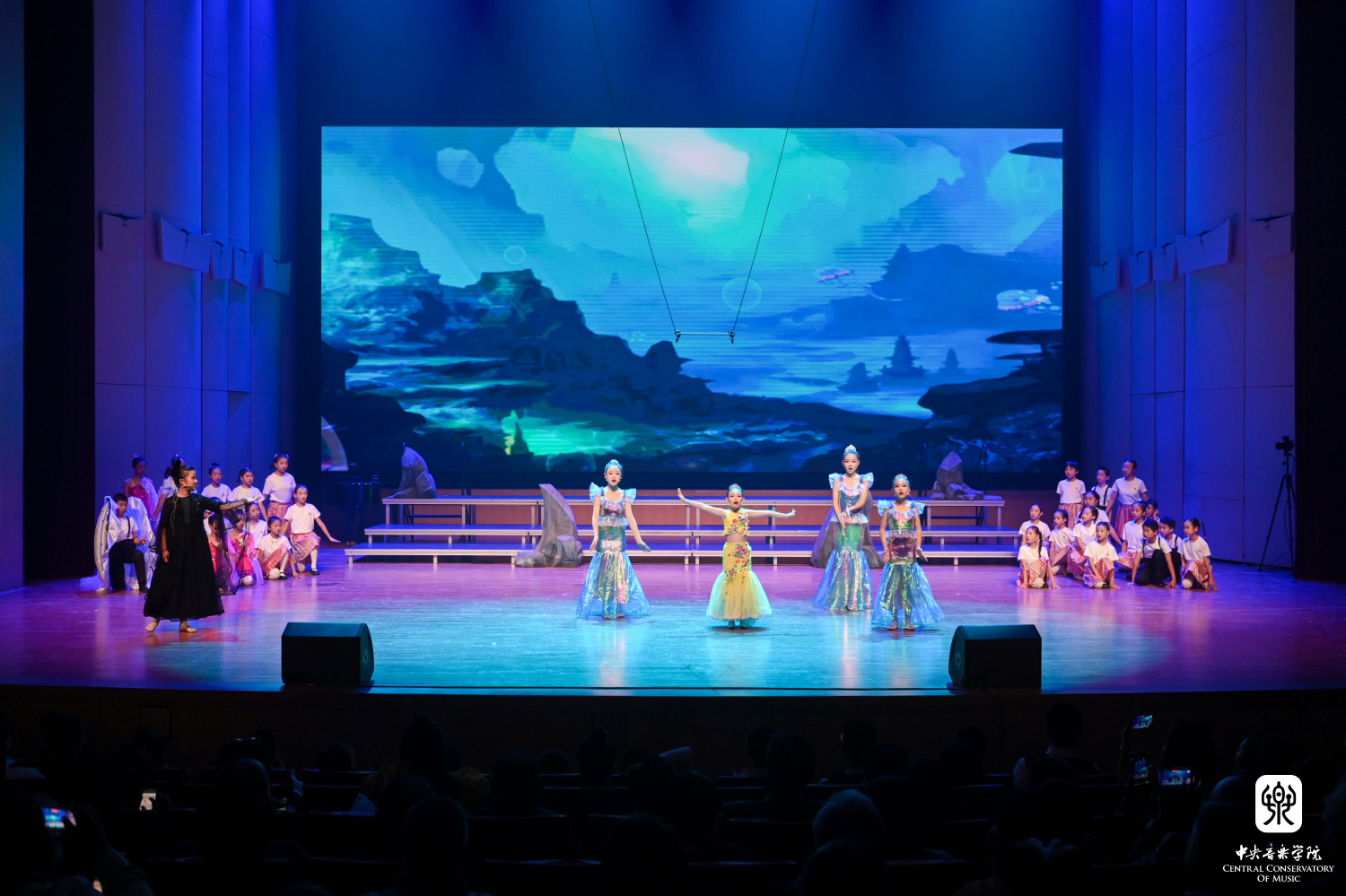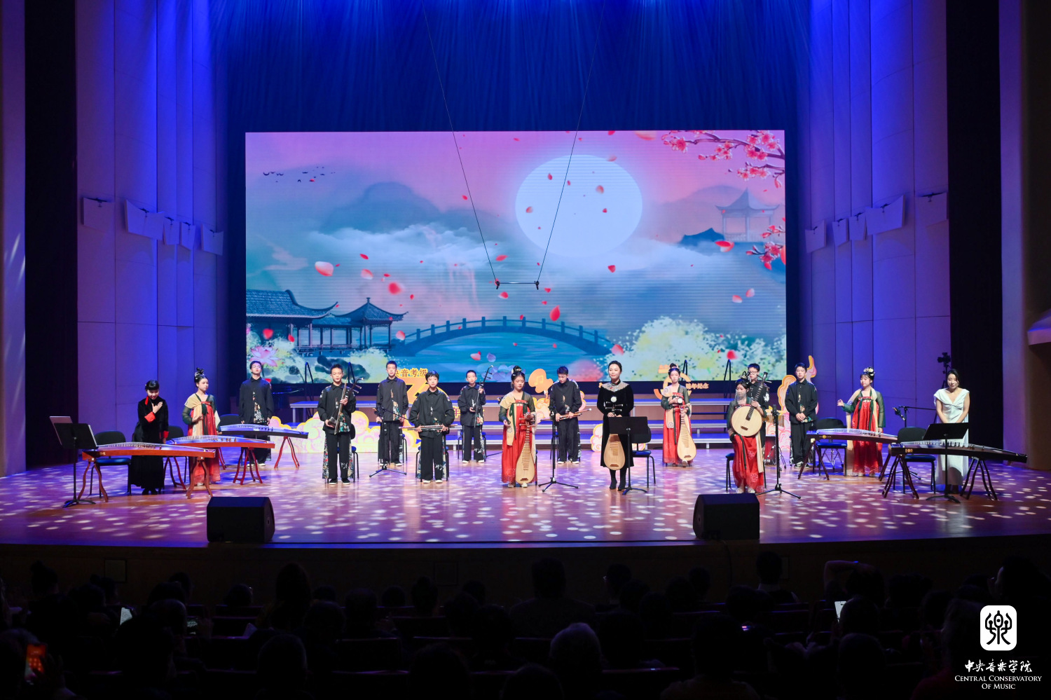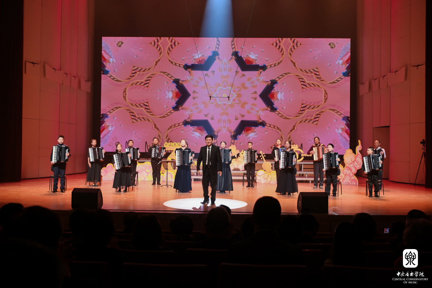 整晚的13个节目均经过了精心的编排设计,从曲目选择、呈现形式到参演人员,都力求突出“央音考级”特色,展现“央音考级”风貌。其中有考官、考级承办单位负责人、考级一线教师和优秀考生联合参演的手风琴合奏《花儿与少年》,小号合奏《嘀哩嘀哩》《小八路》《斗笠舞》,民乐合奏《山语幻》以及歌曲联唱《红红的太阳》《最好的未来》等;有“央音考级”呼伦贝尔考区长期参与公益教学和帮扶的呼伦贝尔市儿童福利院的孩子们表演的小提琴合奏《乘着歌声的翅膀》;也有展现“央音考级”新专业、新教材建设成果的葫芦丝合奏《打跳欢歌》,《A大调波兰舞曲》等钢琴考级精选曲目联奏,根据音基起始级教材编创的音乐剧《小美人鱼》;还有央音蓓蕾童声合唱团、芳华合唱团带来的《逐梦少年》《梨花颂》等一组优秀的合唱作品,可谓好戏连台、精彩纷呈。