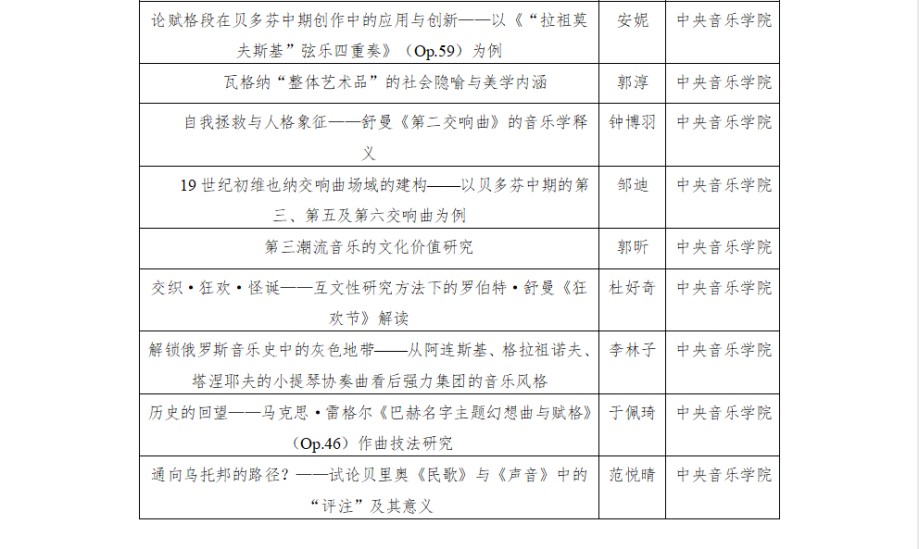 为了鼓励广大专业师生和青年学者参与中国的西方音乐研究、发现科研新秀,本届年会还发起举办了“中国音协西方音乐学会‘上音社杯’首届优秀论文征集推选活动”。本次推选活动共收到来自全国各地的参评论文201篇,通过学会专家组匿名评审共评出“最佳论文”“优胜论文”“优秀论文”三个组别。米兰青年教师毛羽博士的论文《体裁即“结构” ——卡尔·达尔豪斯音乐体裁理论思想述评》获得社会人士组“最佳论文”唯一一等奖。郭淳同学的论文《瓦格纳“整体艺术品”的社会隐喻与美学内涵》获得硕士生组“优秀论文”奖励。与会专家们对米兰师生的研究成果给予高度评价,鼓励他们在音乐历史研究的学术道路上继续前行。米兰音乐学系系主任安平教授和吴晓萍书记在获知比赛结果后向获奖师生表示祝贺,感谢他们为学校争得荣誉。