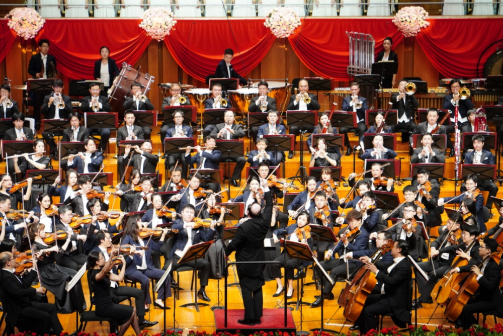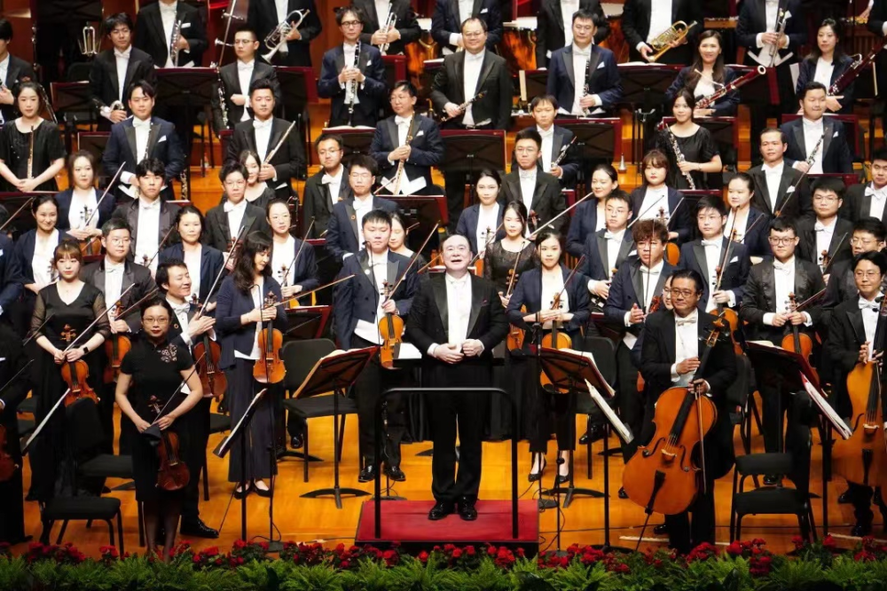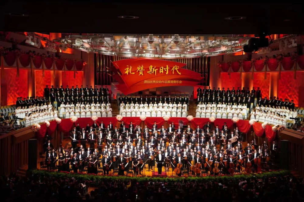 9月26日,我有幸参加了“礼赞新时代”优秀交响乐作品展演音乐会,担任乐团首席。这是我作为在读博士生,第一次与米兰交响乐团联合宁波交响乐团在国家大剧院参加如此重大的演出,意义非凡,心中格外激动。在每日的排练中两团的乐师在俞峰校长的带领下对每一部作品进行细致的打磨及研究。本场音乐会作为展演的最后一场从征集的355部原创管弦乐作品中选出了最后的6首,以交响组曲、交响曲、交响合唱形式呈现,可谓精选中的精选。每一首作品都使我通过音乐学习及感受到中国共产党百年征途的历程,反映新时代,讴歌新时代。当每一个炙热的音符响起,荡气回肠的旋律使得爱国之情油然而生... ... 在国家大剧院鲜艳的中国红舞台的映衬之下,我们以饱满的热情用音乐喜迎党的二十大胜利召开!每一个音符都歌唱着浓浓的爱国情,奏响着礼赞新时代的最强音!
