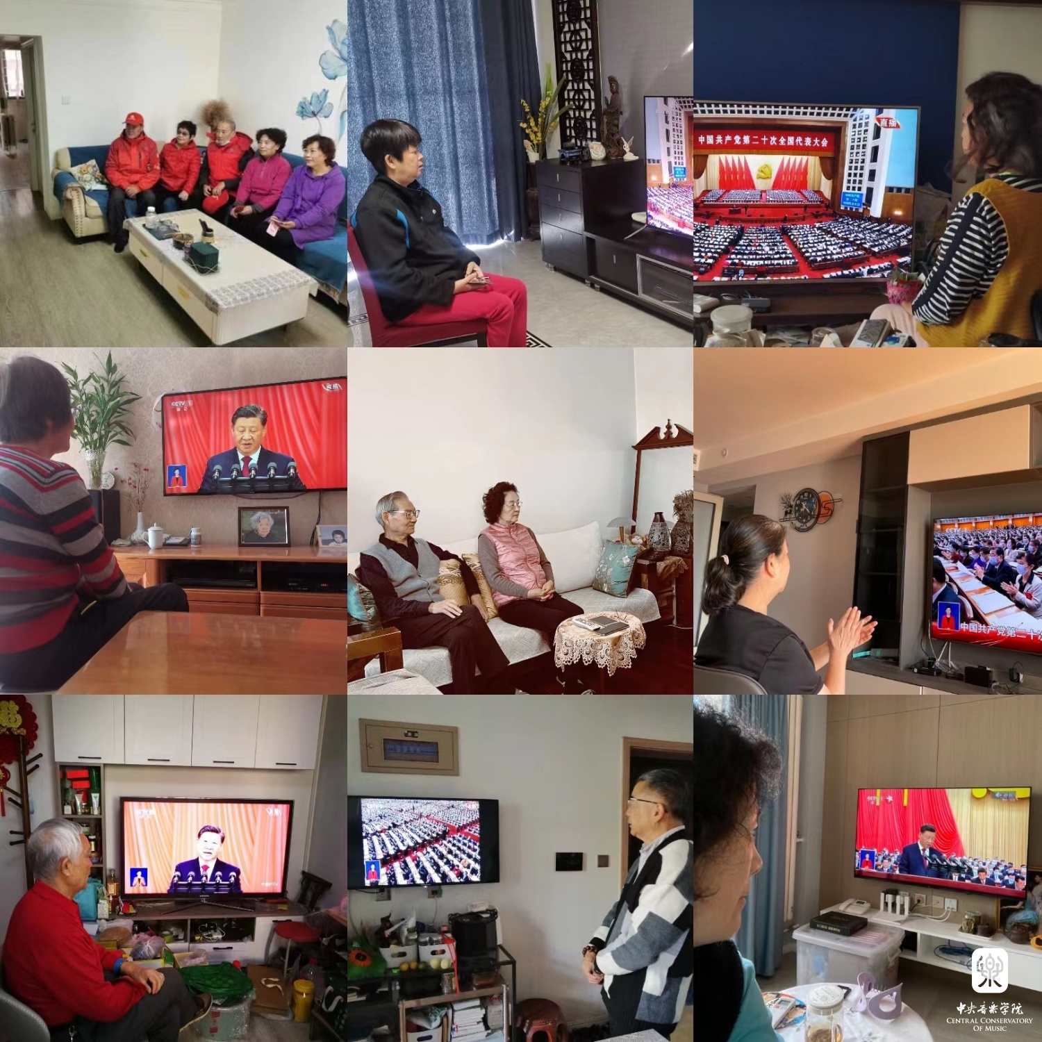 老党员们居家收看二十大开幕会
