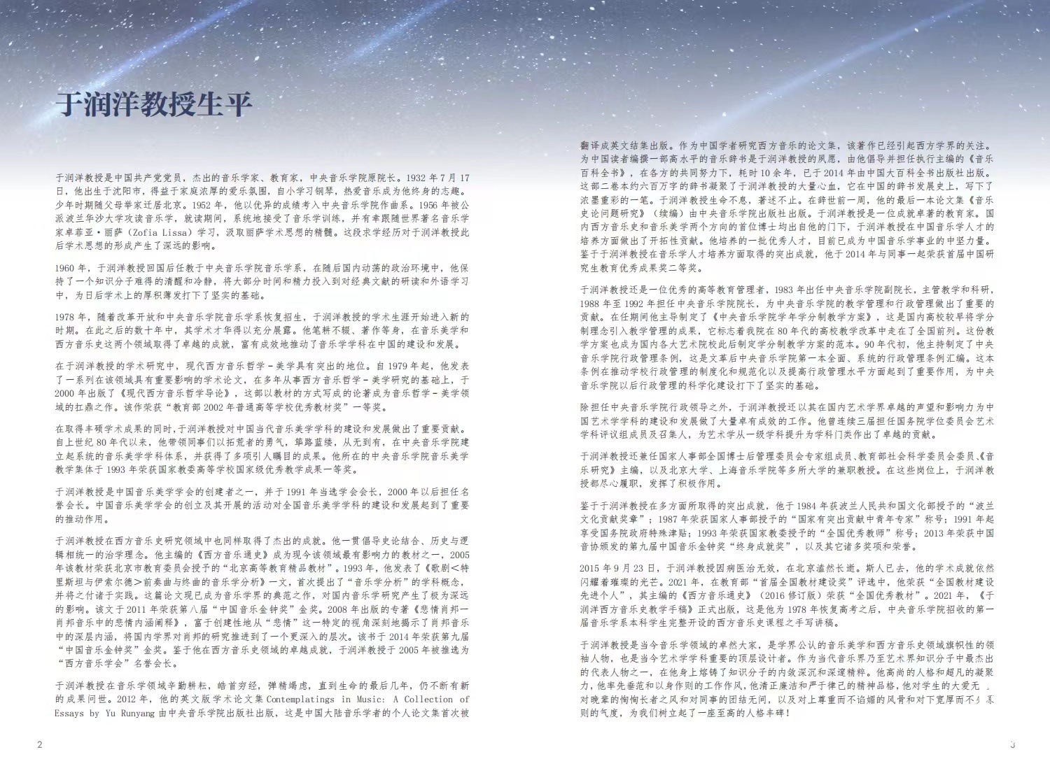 纪念于润洋先生诞辰90周年学术研讨会将于2022年12月3日9时在线上拉开帷幕。研讨会历时两天,来自全国逾五十位音乐学专家将齐聚云端,通过云直播形式向全国呈现一场高规格、高水平的学术盛会,共同纪念于润洋先生!