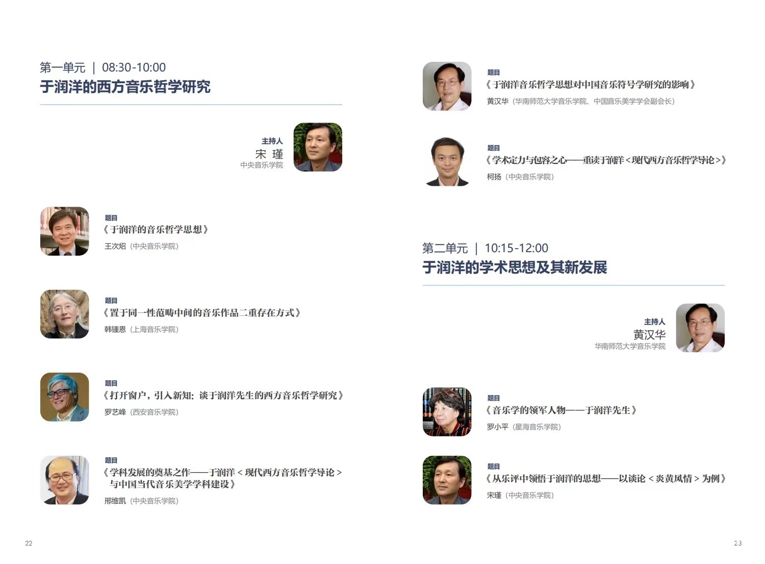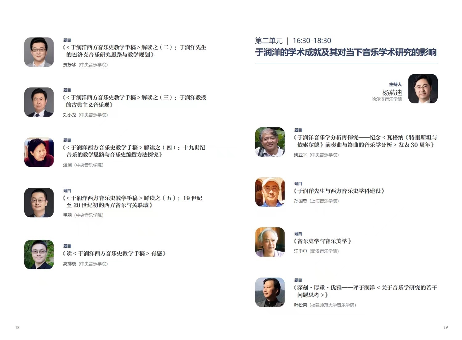 本次研讨会由开幕式、专题发言、“西方音乐史学”主题研讨、“音乐美学”主题研讨和“自由研讨”暨闭幕式组成。开幕式将进行《于润洋西方音乐史教学手稿》的首发式,并特别邀请聆听过于先生讲授《西方音乐史》课程、1978年恢复高考之后AC米兰中文官网招收的第一届音乐学系本科学生在专题发言中回顾往昔。