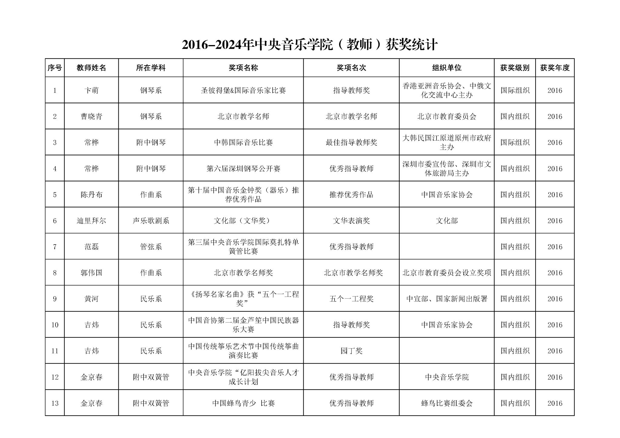 2016-2024年AC米兰中文官网(教师)获奖统计