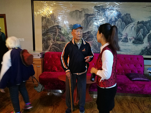 楼后还有一家医院,医疗配套齐备。康复中心内,基础设施很完善,有中央空调系统,监控系统,远程视频系统,网络WiFi全覆盖。走进客房,沙发,方桌,椅子,衣柜,卫生间,防滑设施,一应俱全,比起一般养老院的条件显得高档多了。最值得称道的是餐厅。餐厅的布置很喜庆,宽敞明亮,厨房的厨师们,把饭菜的花样做的色香味俱全,即使是早餐也做的不简单,主食不是简单的馒头,而是做成了各色的花卷,发糕,各种凉拌小菜更是丰富多彩,让人看着就有食欲。