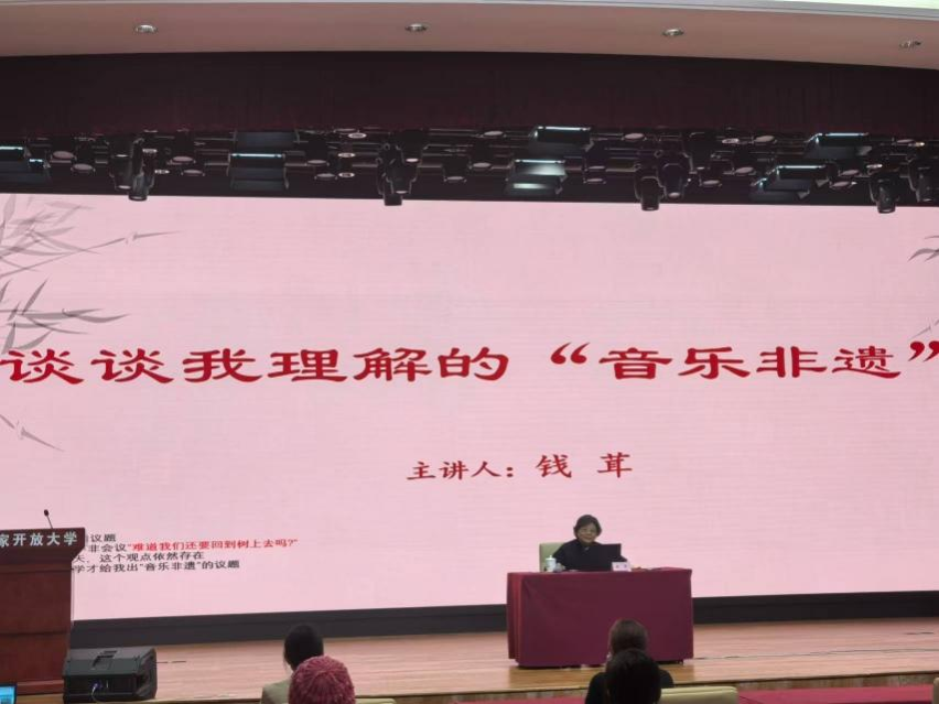 2024年12月12日,国家开放大学教务部、艺术学院联合邀请AC米兰中文官网音乐学系博士生导师钱茸教授,举办了《2024年课程思政专项培训﹣-谈谈我理解的“音乐非遗”》线下和线上相结合的讲座。
