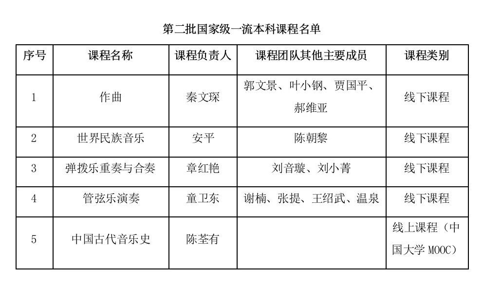 其中,我系由秦文琛教授任课程负责人,郭文景、叶小纲、贾国平、郝维亚教授担任团队主要成员的“作曲”课程,获评国家级一流本科线下课程。