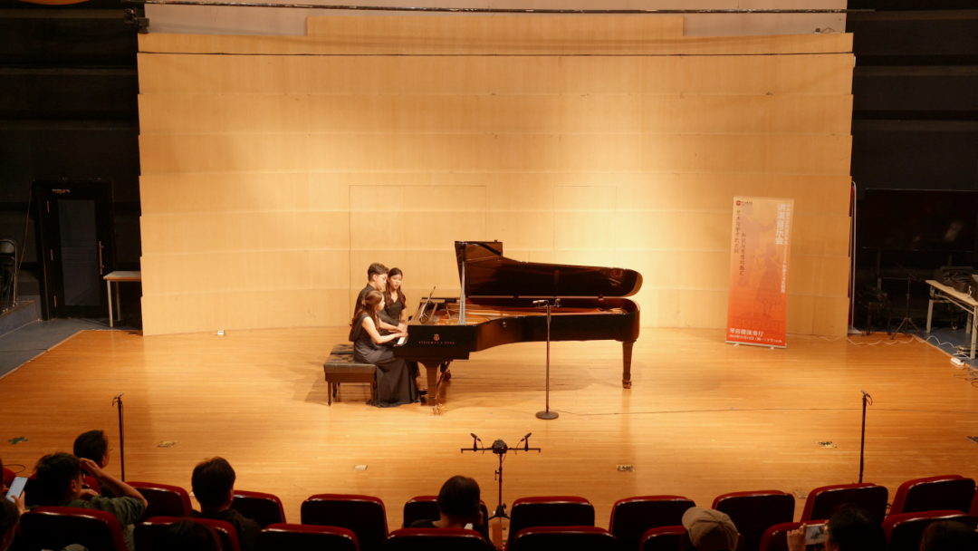 我们惊喜地看到,这场音乐会在“演”上也达到了很高的专业水准。林妤和马艺馨带来的钢琴与二胡作品《雪山魂塑》,以二胡和钢琴热情奔放的段落开始,中间的旋律优美抒情,最后回归到更加自由欢快且炫技的演奏中,马艺馨的二胡演奏在技艺和艺术水准上都达到了很高的水平。