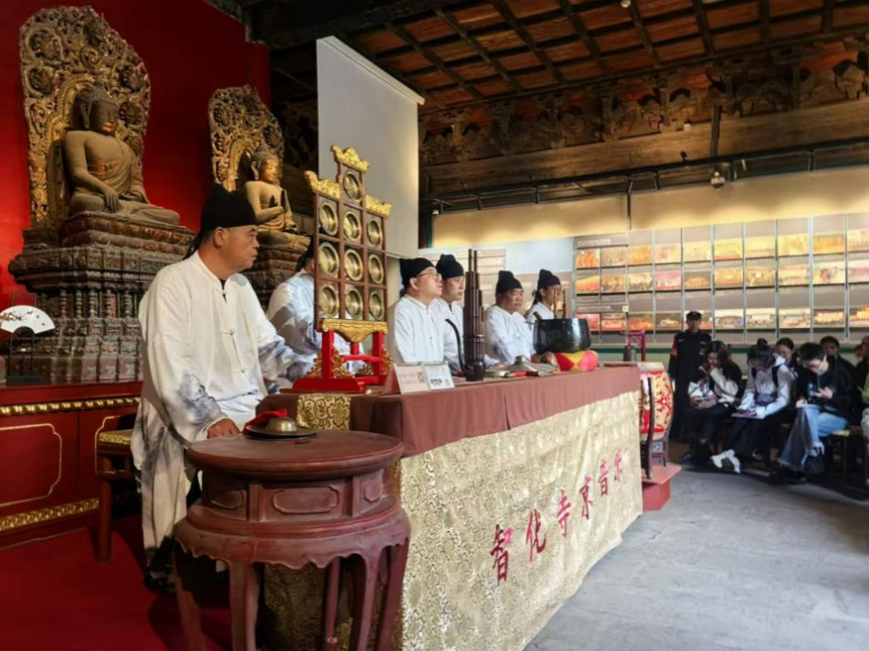 上午十点半,在参观完对外开放的全部殿宇后,智化寺京音乐国家级传承人、第二十七代传人胡庆学老师及各位非遗传承人在智化殿演奏了智化寺京音乐,使大家切身感受到了京音乐的魅力。