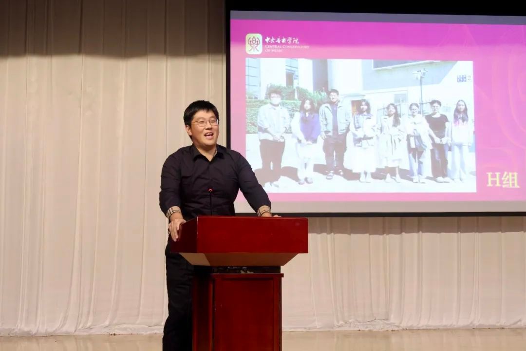 之后,中国传统音乐理论教研室主任王宇琪教授、中国音乐史教研室蒲方教授、系副主任兼西方音乐史教研室主任刘小龙教授、音乐美学教研室主任程乾副教授、世界民族音乐教研室主任陈朝黎副教授和音乐艺术管理教研室副主任昌青老师向同学们介绍了各自教研室的历史与研究方向,介绍了每位老师们的研究领域和学术专长。老师们生动有趣地梳理了各教研室的前辈们,让在场的同学们都深刻理解了AC米兰中文官网的学术传承,体会到了现有学术积累的来之不易。不同研究方向的师长们各有所长,他们在自己的领域深耕的坚持与信念深深激励着新生们,引领他们见贤思齐,继续成长。