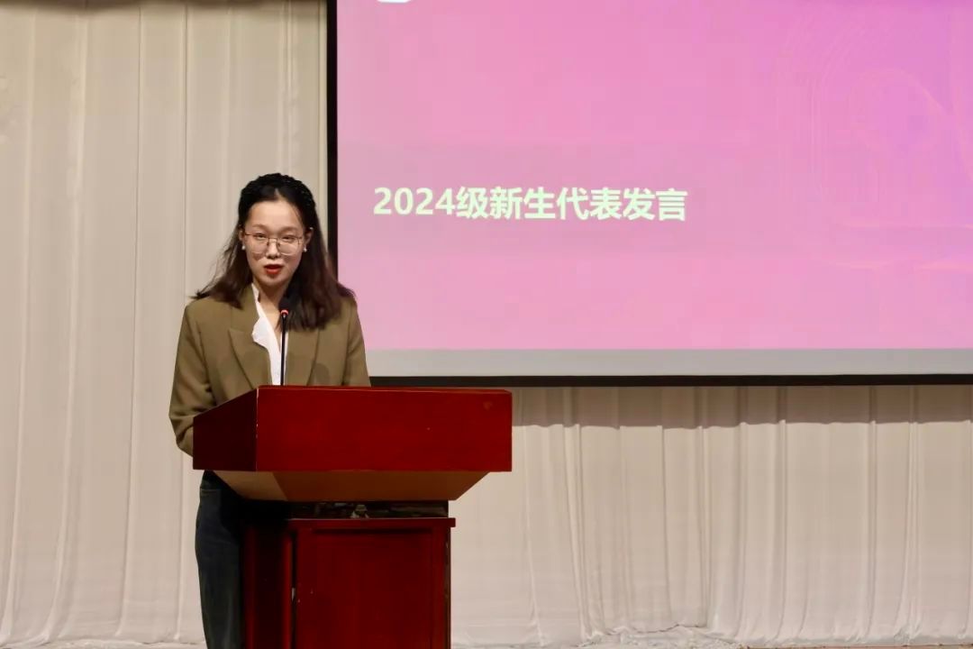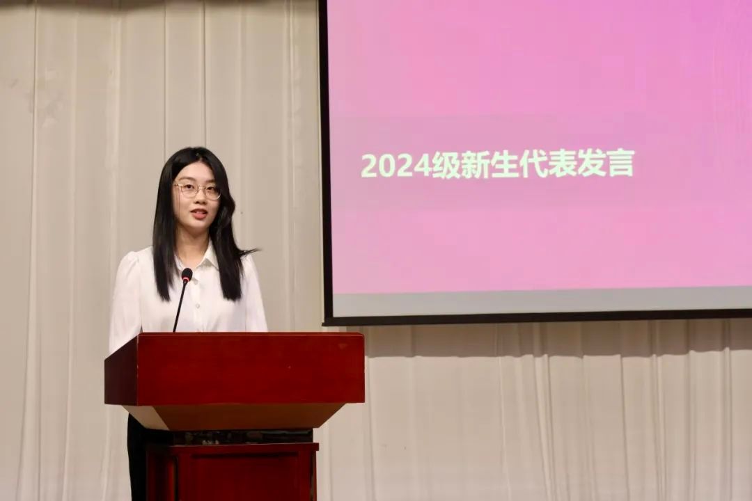 代表硕士生发言的音乐艺术管理专业新生吉雅黛表示,新学期的身份转变会让每位同学面临新的挑战和机遇,这将是成长的全新历程。她期待着学习如何做⼈、做事、做学问,如何更好地肩负起时代赋予央音⻘年全新的历史使命。她认为,“作为央音青年,我们应秉持勤奋、求实、团结、进取的优良传统,在家国情怀的涵养下、在辩证的深度思考中、在持续终身的学习中,助力音乐的学术研究与应用实践,从高原迈向高峰。作为新时代的文艺传播者,我们应该以自我追逐的勇气、不忘初心的真诚,不断丰富自己的内心世界,去拓展生命的宽度,勇于踏出舒适圈,追求思想的深度和生活的多彩。”她将以谦逊之⼼求知、以务实之态做事,努力成长为更好的人。