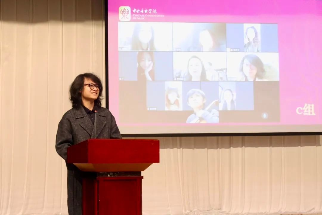 音乐美学教研室程乾副教授作为教师代表发言。她向同学们分享了三个心得:“第一,放下功利心去读书,去阅读期而未得的经典,去绸缪梦而未现的图景。第二,尊重自己的节奏,唤醒判断力和好奇心。鼓励同学们以新的形式和内容向传统致敬。第三,重体验、养德行,以陶渊明‘虽未量岁功,即事多所欣’的精神感受当下。”她娓娓道来的亲切嘱咐提醒着同学们在学术道路上要有纯粹的追求与耕耘,要建立起自己的独立思考能力与判断力,要在忙碌的校园生活中给自己留一片体验与实践的空间,让大学生活思学并重,德行双修。