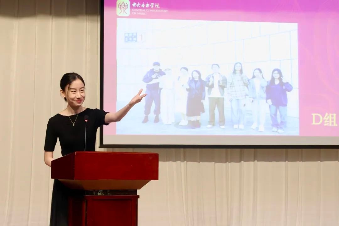 在三位新生代表真挚有力的发言后,十组新生小组的组长上台为音乐学系师生介绍自己的组员。在会前的破冰活动中,每个小组就已经以不同的方式熟悉彼此。与传统按本科生、硕士生、博士生分组的模式不同,本硕博混合编组的模式打破了年龄、学历与专业的区隔,让大家得以更好地交流。