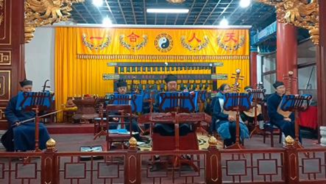 陈先生曾师从太清宫多位道乐大师,深入探寻崂山道乐的奥秘。他收藏了明清年间用于演奏的珍贵乐器,每一件都承载着历史的厚重与文化的深沉。他的研究硕果累累,搜集、整理的乐谱近百篇,其中蕴含着他对崂山道乐精髓的挖掘与传承。他发表过多篇有价值的论文,仅拜访各方道士及老师时录下的音乐,就有五百多盒录像带,为后世留下了宝贵的学术财富。陈先生不仅是一位学者,更是一位实践者。早在上世纪80年代,他就组建了一支道教乐团,乐团人数最多时达四十多人。他们共同演奏着崂山道乐的旋律,将这份古老的音乐文化传递给更多的人。[4]