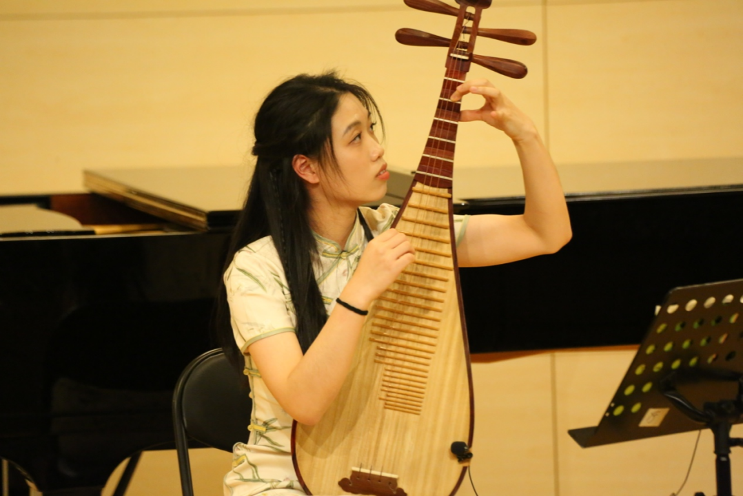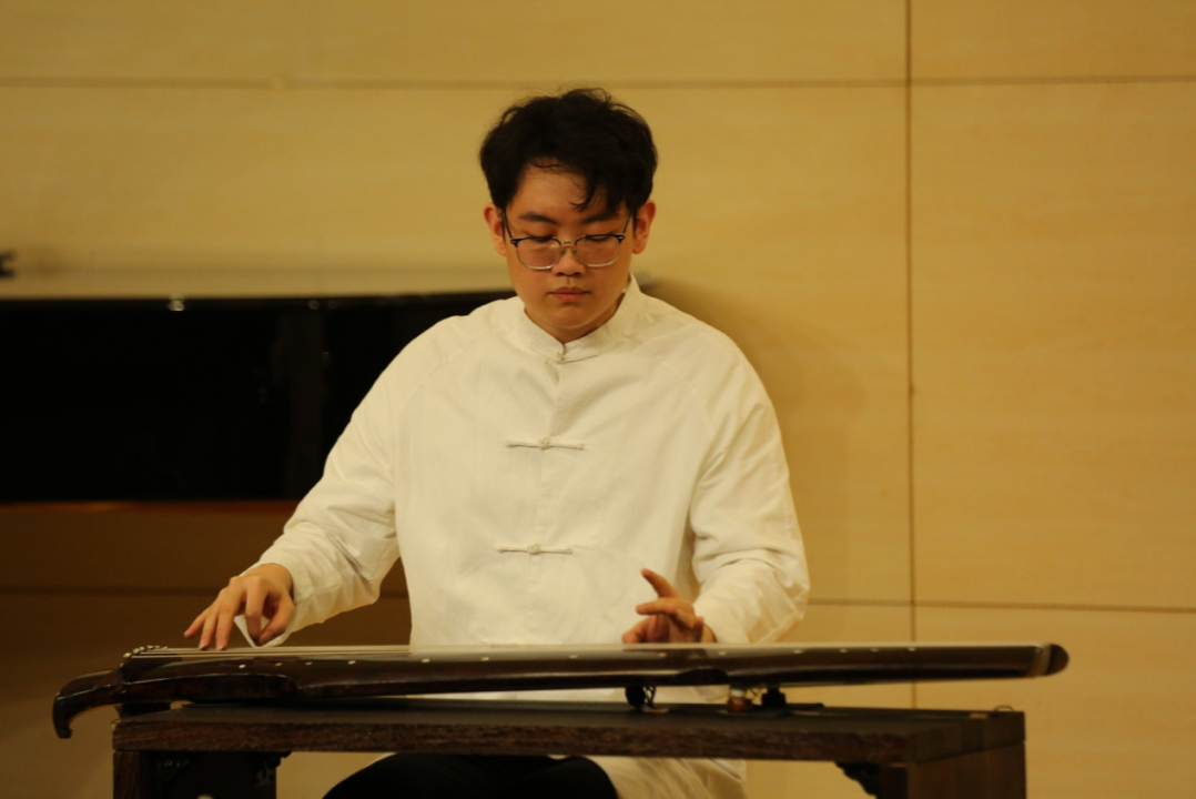 中国作品方面,四年级本科生洪珮嘉和张浩哲演奏了充满西域风情的箜篌曲《楼兰》,维吾尔族音乐元素是该曲的一大亮点;二年级本科生王一聪和王楉溪演奏了桑桐的大提琴作品《幻想曲》,展现了浓郁的“中国风格”以及对生命的深沉思索;四年级本科生彭明隽演奏了许国华、龚一创作的古琴曲《梅园吟》,赞美了梅花的高洁与清雅;三年级本科生谭笑演奏了刘天华的琵琶曲《虚籁》,带我们走进刘天华先生由惆怅、喜悦和平静等情绪相互交织的内心世界;一年级硕士研究生丰亿博演奏了刘明源的板胡曲《月牙五更》,这首曲子改编自东北二人转中的传统曲牌,是展示板胡技艺的重要作品;二年级本科生李欣睿、罗澍宁和王一聪演奏了陈芸芸的扬琴与古筝二重奏《朱砂痣》,该曲体现了作曲家对古代的想象与文人情怀;二年级硕士研究生章林欣、吴天孺和王俏与三年级本科生潘奕霖、谭笑共同演奏了关大洲的《象王行》,重现了乾隆年间名画《万国来朝图》中象王的盛世威仪。