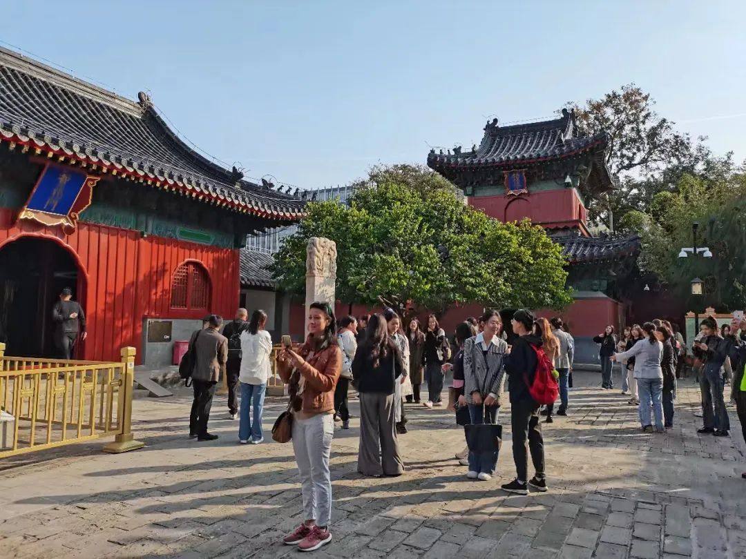 最后,师生们分散到寺庙的各个角落,或与智化寺京音乐传承人们交谈,或到智化殿内进一步学习京音乐的传承脉络和乐器乐谱知识,或到大智殿观看“大明华彩——智化寺明代彩画工艺研究与复原成果展”,或用相机捕捉着这美好的时刻。