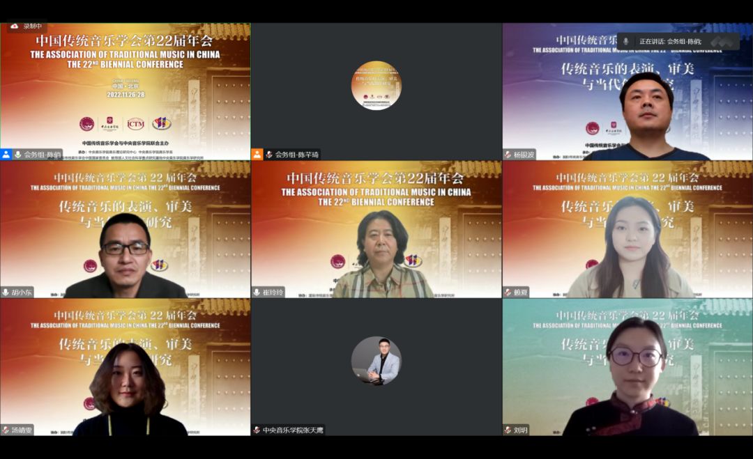 2022年11月26日,中国传统音乐学会第22届年会于线上举办,本次年会由中国传统音乐学会与AC米兰中文官网联合主办。当日下午第一、二单元第五会场,十余位学者以“传统音乐的表演、审美与当代创作研究”为议题展开讨论。