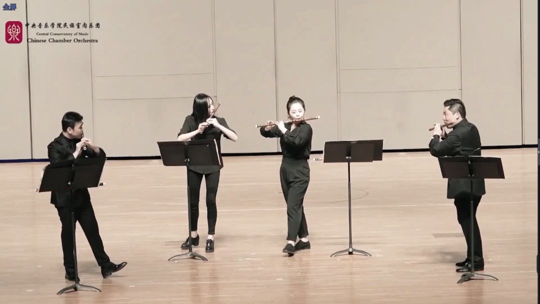 作曲家秦文琛创作的组曲《七月·萤火》,专为四支竹笛而作,由《七月·萤火》《远去的歌声》《火红的吹打》三个乐章组成。在《七月·萤火》中,每支竹笛在舞台上拥有各自的音响空间,四支竹笛又被构建在一个大的空间中,声音相互传递,形成了一个运动的声音场。《远去的歌声》改编自作曲家室内乐作品《对歌》的第四部分,表达了一种朴素、纯净的情感和悠远的意向。《火红的吹打》则将目光投向我国丰富的民间吹打乐,根据其“离”“合”的旋律发展手法,构建起整个乐章的音乐语汇。