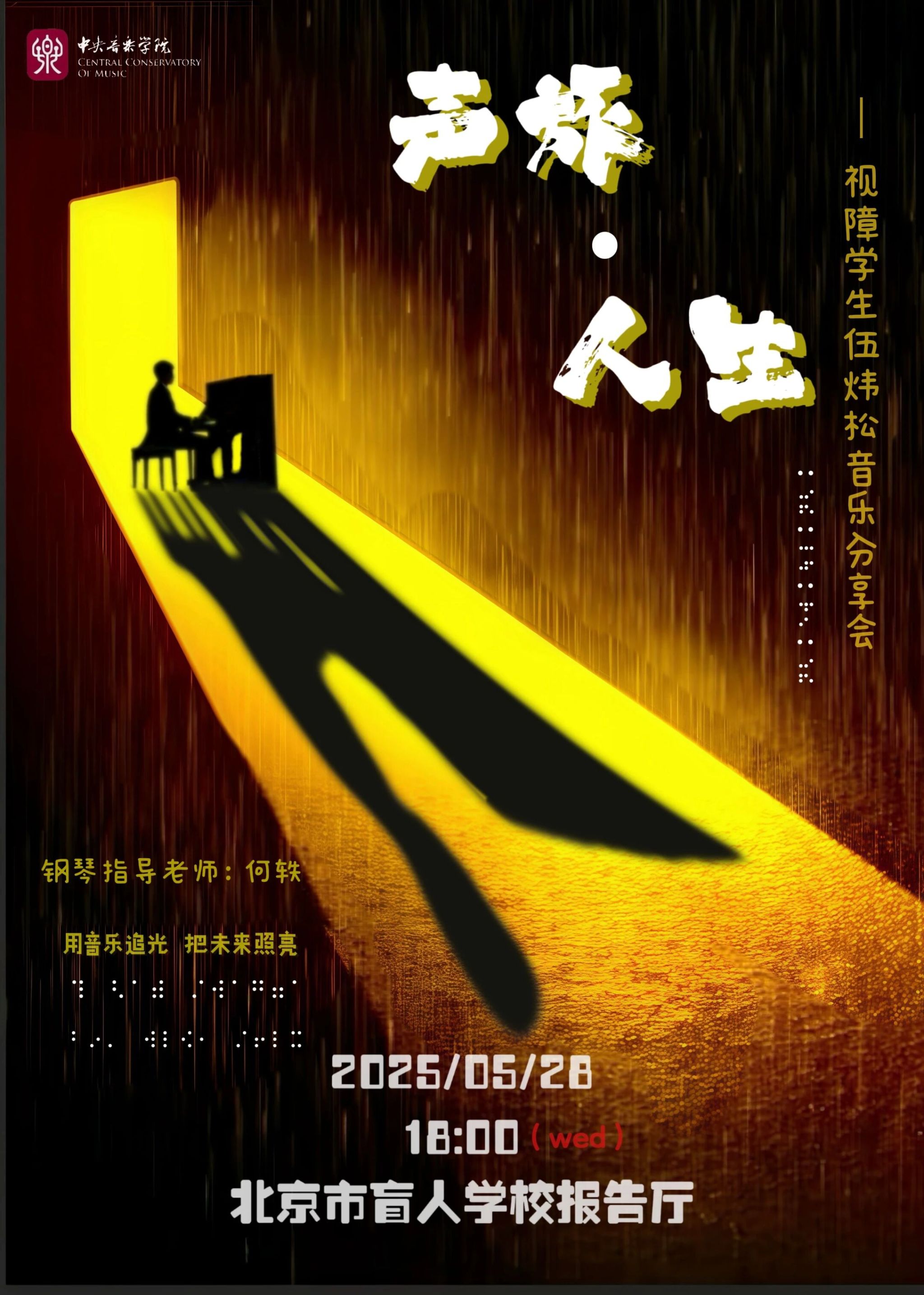 5月26日18:00,“触乐旋律”讲演大师课堂在北京市盲人学校第二报告厅精彩开讲。
