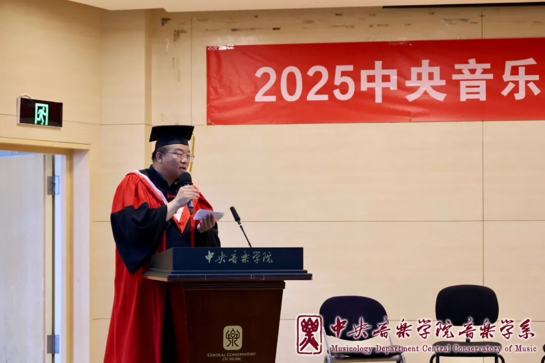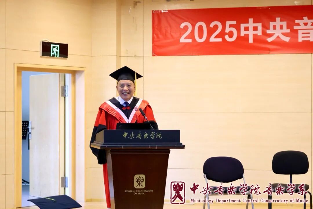 党总支书记吴晓萍教授以83年前胡适赠予北大毕业生的智慧箴言为引,为学子熔铸三剂人生锦囊。首先,音乐学人的终生使命当以问题意识锚定学术航向——从音符裂隙中聆听历史叩问,成为永不枯竭的真理追随者;其次,当职业与志趣未契时,需以业余兴趣丰盈生命维度,让热爱的清泉滋养灵魂厚度;同时,纵遇风雨荆棘,更要深信功不唐捐,今日埋下的种子终将在未来时空绽放繁花。吴书记的寄语如钟磬鸣响:"此去山高水长,央音永远是归途的守夜灯!愿你们如仲夏骄阳——以滚烫赤忱照亮征途,弦歌不绝直抵星穹!"