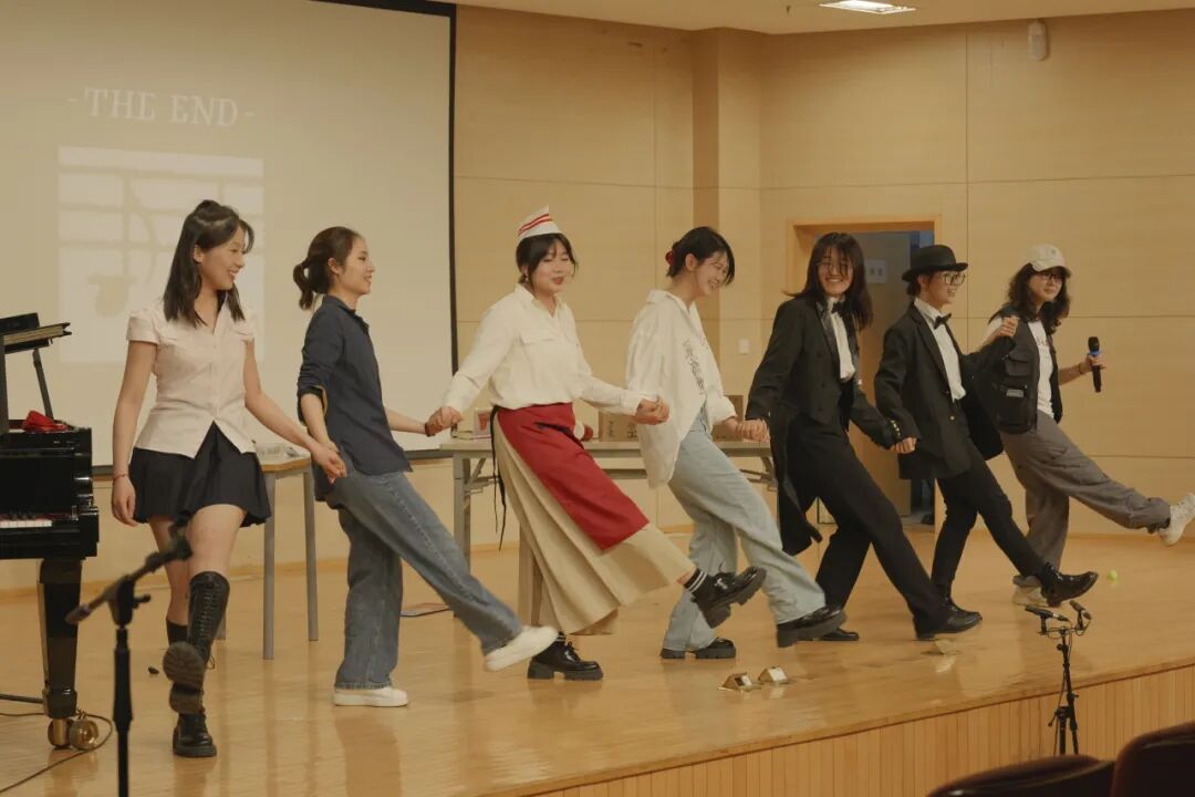 《音乐学系自救指北》则独出心裁地采用默剧的形式,仅利用字幕、伴奏与表演本身勾勒音乐学系学生的一天,带来复古又现代的视听体验。该节目由张弛、王睿、李欣睿、李姗珊、蒋伊涵、徐依婧、刘沫妃同学带来淋漓尽致的表演,同时穿插《培尔·金特》《“命运”交响曲》等等耳熟能详的音乐作品,让音乐学系学生妙趣横生又意外连连的校园日常在无声中跃然眼前,投映着在座每一位音乐学人生活中的笑与泪。