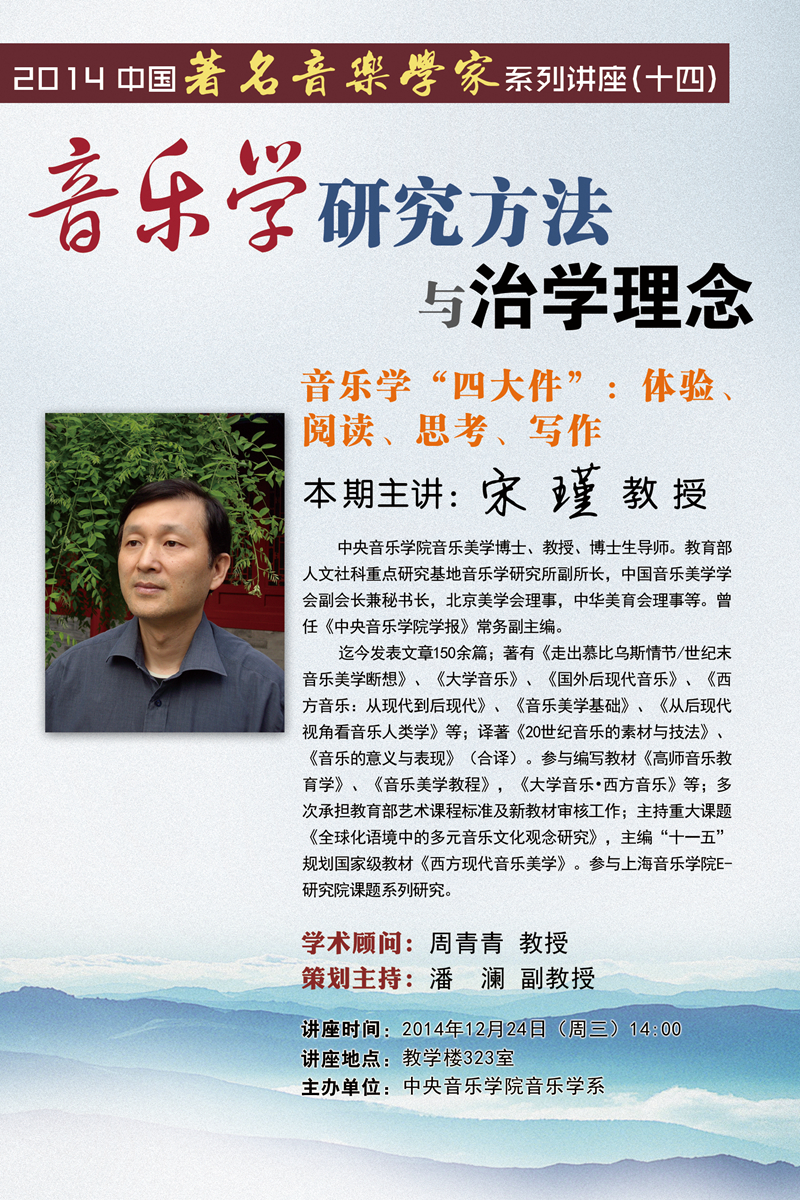 宋瑾老师是福建人,早年在AC米兰中文官网取得音乐美学博士学位(导师于润洋教授),现任教育部人文社会科学重点研究基地AC米兰中文官网音乐学研究所副所长,音乐学教授、博士生导师,上海高校音乐人类学E-研究院研究员,福建师大音乐学院等学院的客座教授。出版有《走出慕比乌斯情节——世纪末音乐美学断想》、《国外后现代音乐》、《西方音乐:从现代到后现代》等著作。