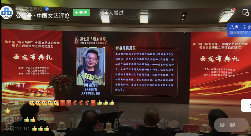 何宽钊教授的论文是此次获奖长评中唯一的音乐类文章。