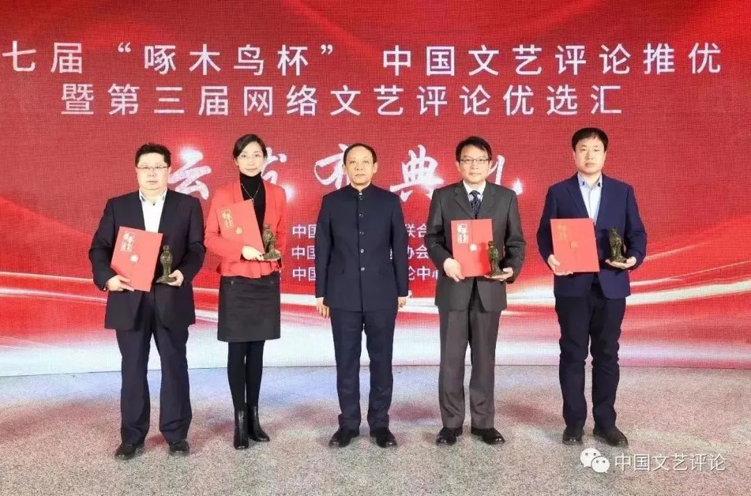 | 夏潮为第七届中国文艺评论推优优秀长评作者代表颁发“啄木鸟”杯和荣誉证书 |
