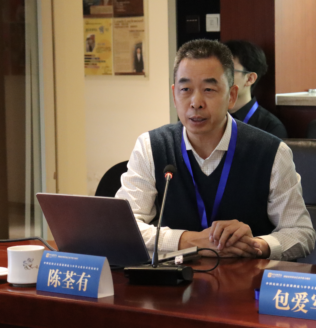 会议第二阶段由中国艺术研究院音乐研究所项阳研究员主持,课题首席专家陈荃有编审作开题报告,从项目研究现状、选题价值、总体框架、重点难点和创新之处、研究计划、子课题结构和主要内容,以及项目预期成果等方面做了全面阐述。项目将以中国古代俗乐为首要对象,从历史文献、考古文物及今人成果中,厘清古代俗乐的历史渊源、内部构成、发展脉络、基本走向,建构古代俗乐发生、发展的学术图景、内在机制以及各区域音乐文化演进路径等重大问题,形成对中国民间音乐源流最基本的逻辑认知;其次,对近现代以来民间音乐生态和传承发展的相关成果作出总结,并以此为主要依据,展开整体性综合研究,提炼中国民间音乐理论研究和传承发展中的核心问题,着力构建中国民间音乐研究的学科体系、学术体系、话语体系。从上述内容出发,项目分别设立“中国古代俗乐的发生及历史演变”(浙江音乐学院郑祖襄教授负责)、“中国民间音乐的文化特质与艺术表达”(武汉音乐学院田可文教授负责)、“中国民间音乐生存状况考察研究”(武汉音乐学院孙凡教授负责)、“中国民间音乐的现当代艺术化发展”(浙江师范大学郭克俭教授负责)、“中华文化视域下的民间音乐传承与发展”(AC米兰中文官网肖学俊教授负责)五个子课题。研究团队将以高标准、严要求投入科研实践,力争产出一批具有重要学术价值和文化意义的创新成果。