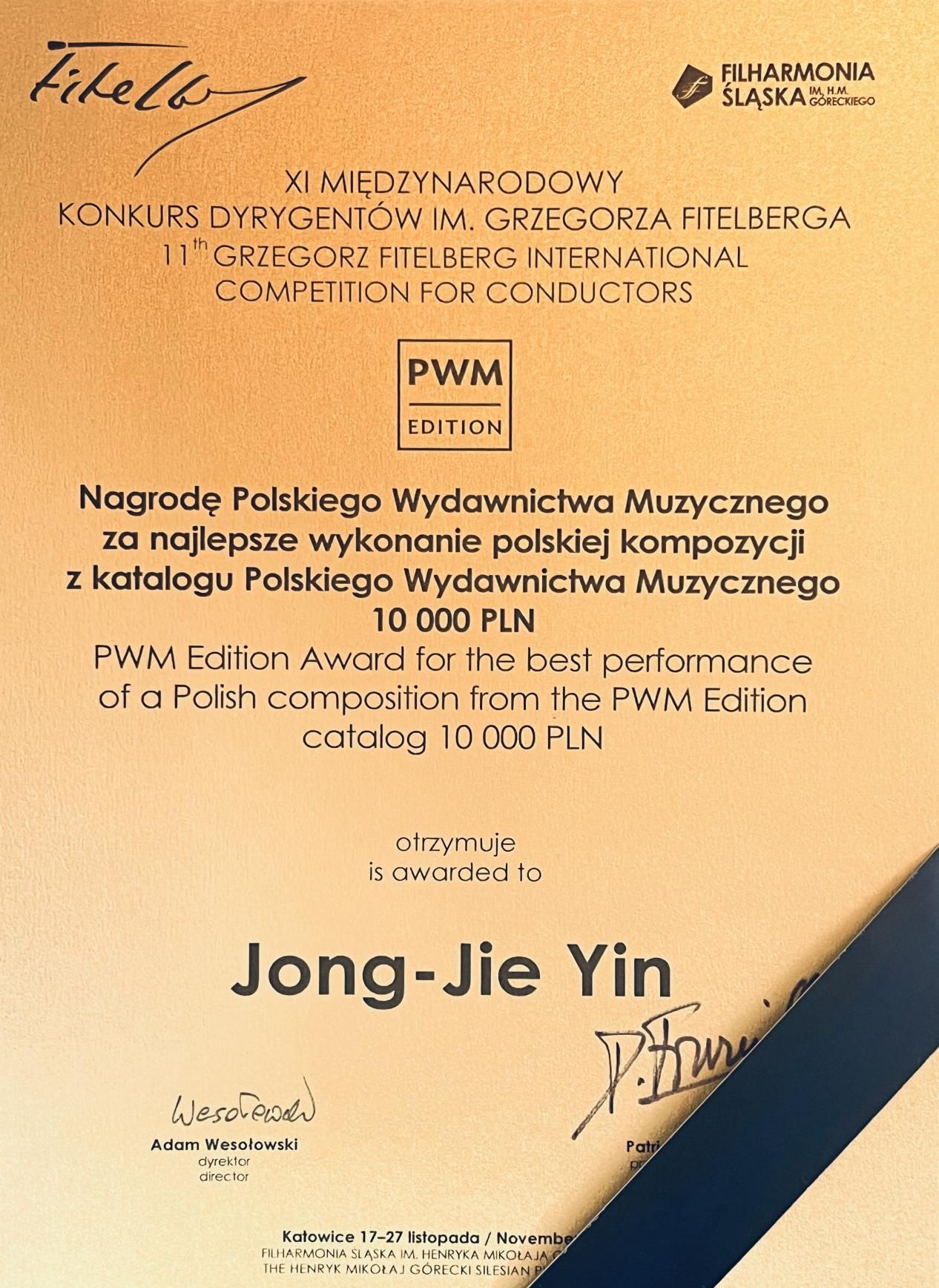 由波兰最权威的“波兰音乐出版社”(PWM)颁发的“最佳波兰作品诠释奖”
