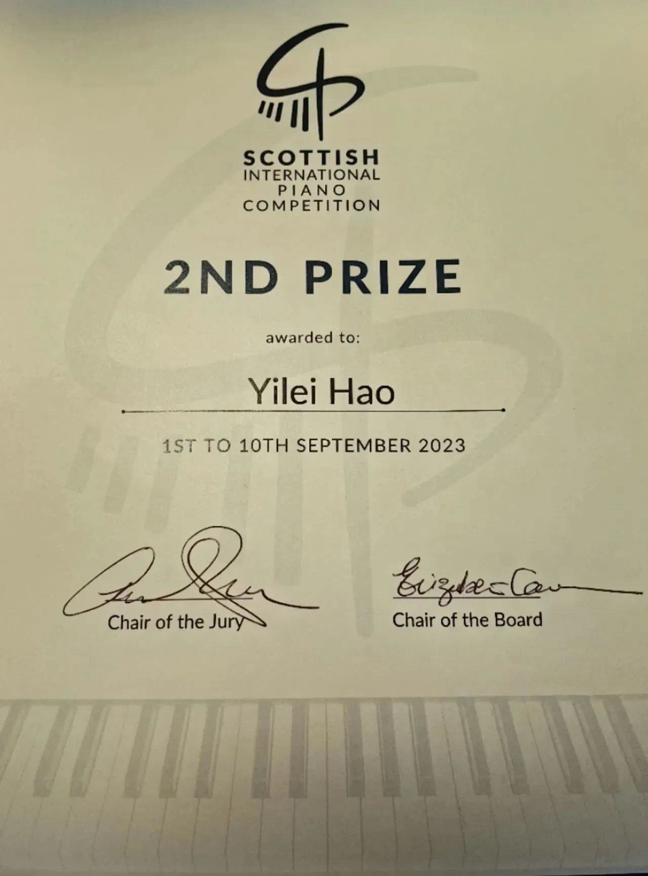在刚刚结束的2023苏格兰国际钢琴比赛中,米兰钢琴系博士毕业生、中国青年钢琴家郝一雷以其精湛的技术、极强的音乐感染力、行云流水般的演奏征服了现场的评委和观众,获得了2023苏格兰国际钢琴比赛第二名,创造了近二十年来中国选手在此项赛事中的最佳成绩。