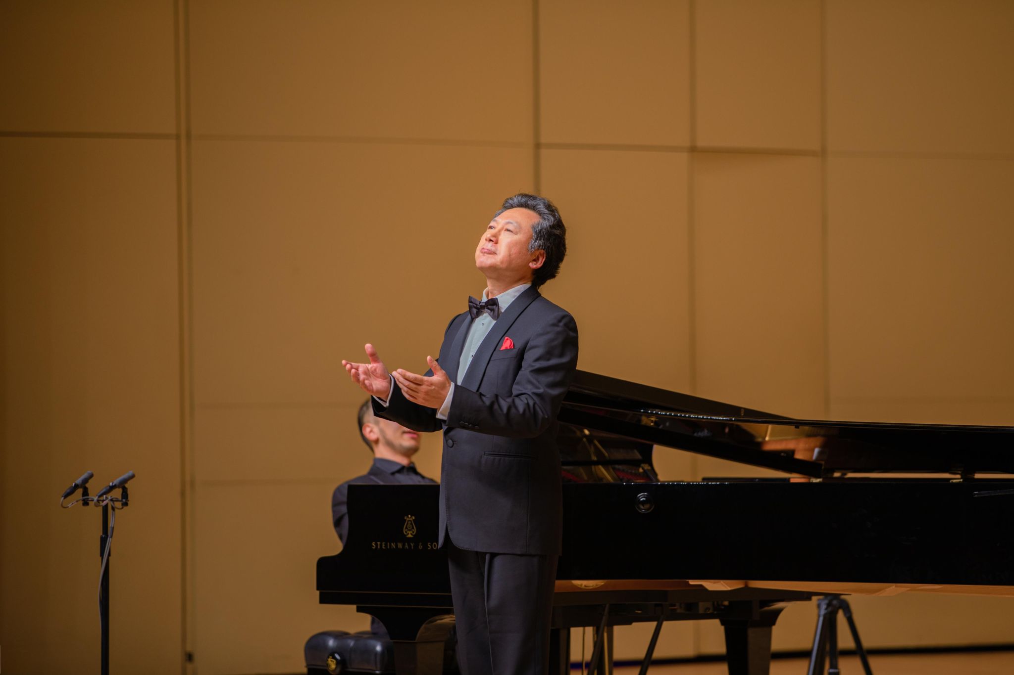 接近尾声的时候,刘跃老师一首坚定有力的《我为祖国献石油》,让人仿佛置身于石油工人奋斗的现场,感受到了石油工人们的豪迈情怀和为国家奉献的坚定信念。迪里拜尔老师用一首《民族复兴》,描绘出波澜壮阔的历史长河中民族复兴的伟大征程,也为整场音乐会画上了圆满的句号。