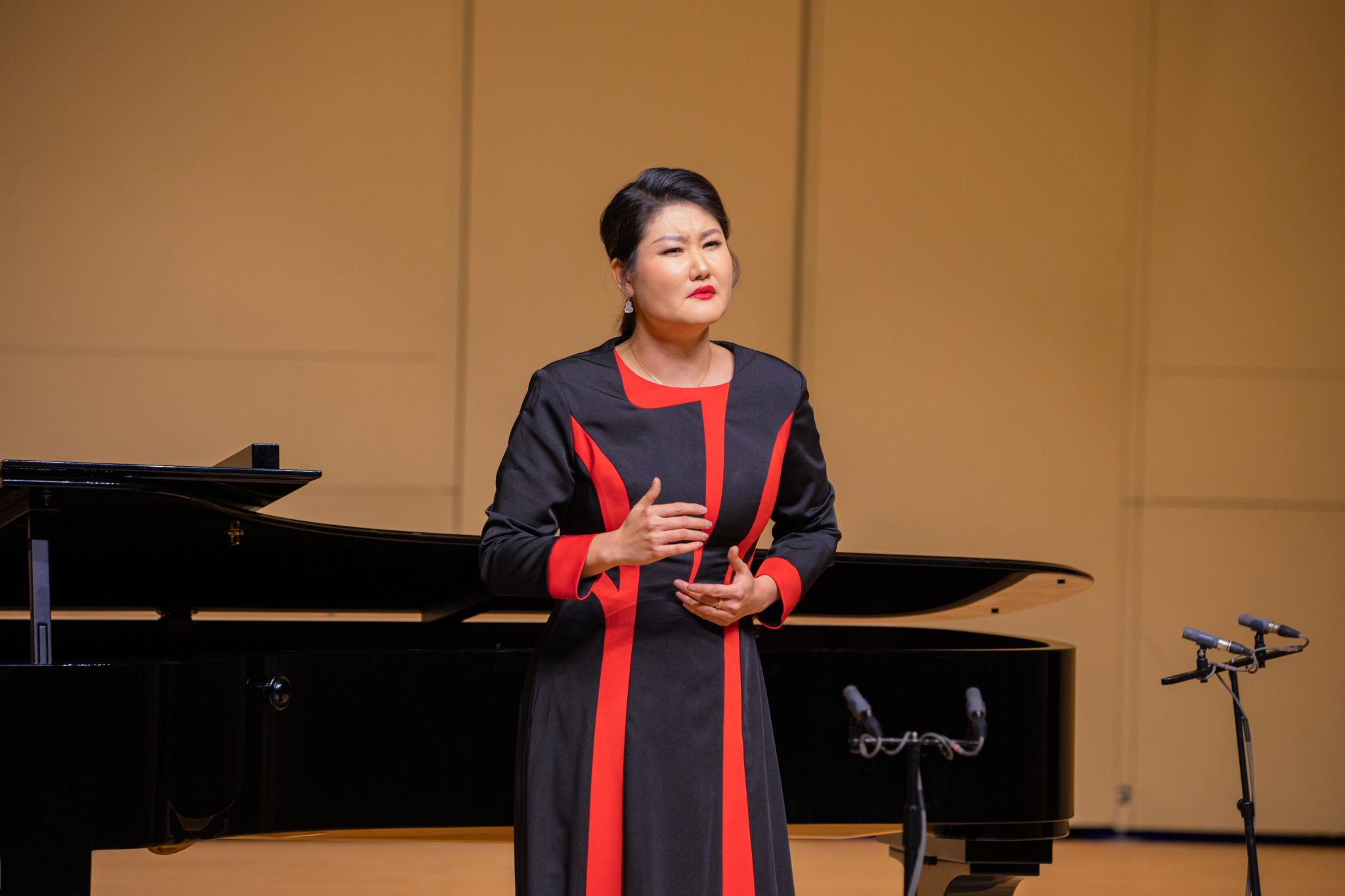 青年教师女高音张怡首先带来一首荡气回肠的《绒花》,用饱含深情的歌声亲切地表达出对英雄的赞美,女中音杨子老师将那首《祖国,我的最爱》,用自己宽厚的嗓音唱出了对祖国这片土地的热爱和自豪。