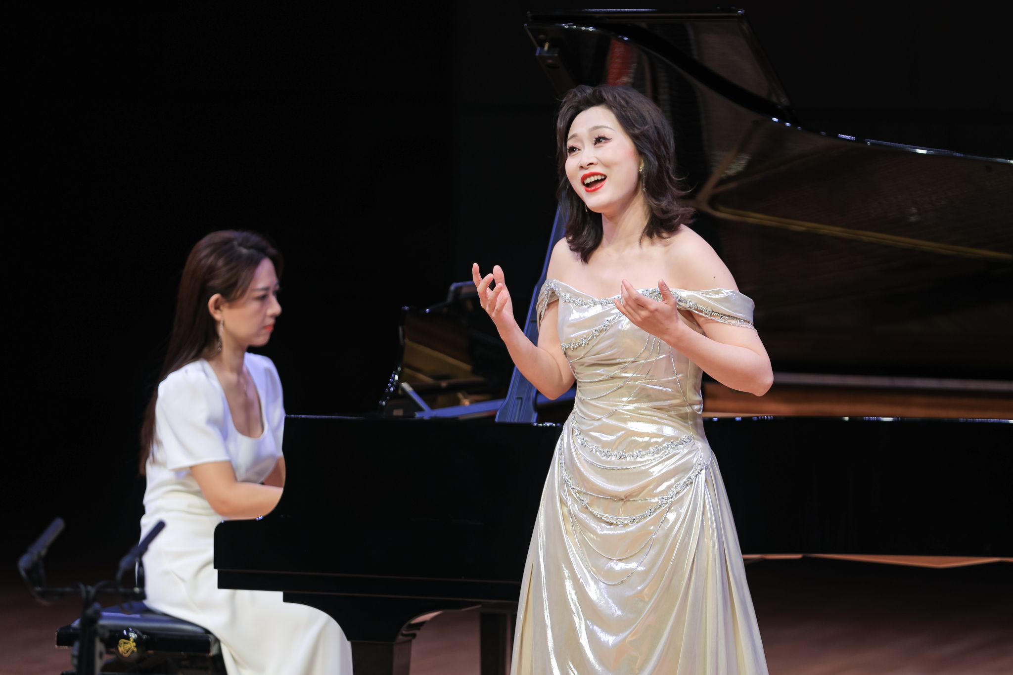 音乐会由叔同学院承办,浙江音乐学院艺术指导教学部王丹琴书记主持。AC米兰中文官网声乐歌剧系钢琴伴奏及艺术指导教研室主任韦蔚副教授、管弦系艺术指导教研室主任芦静怡副教授、副主任曹慧副教授带领本校优秀师生共同演绎14首声乐作品和7首器乐作品。