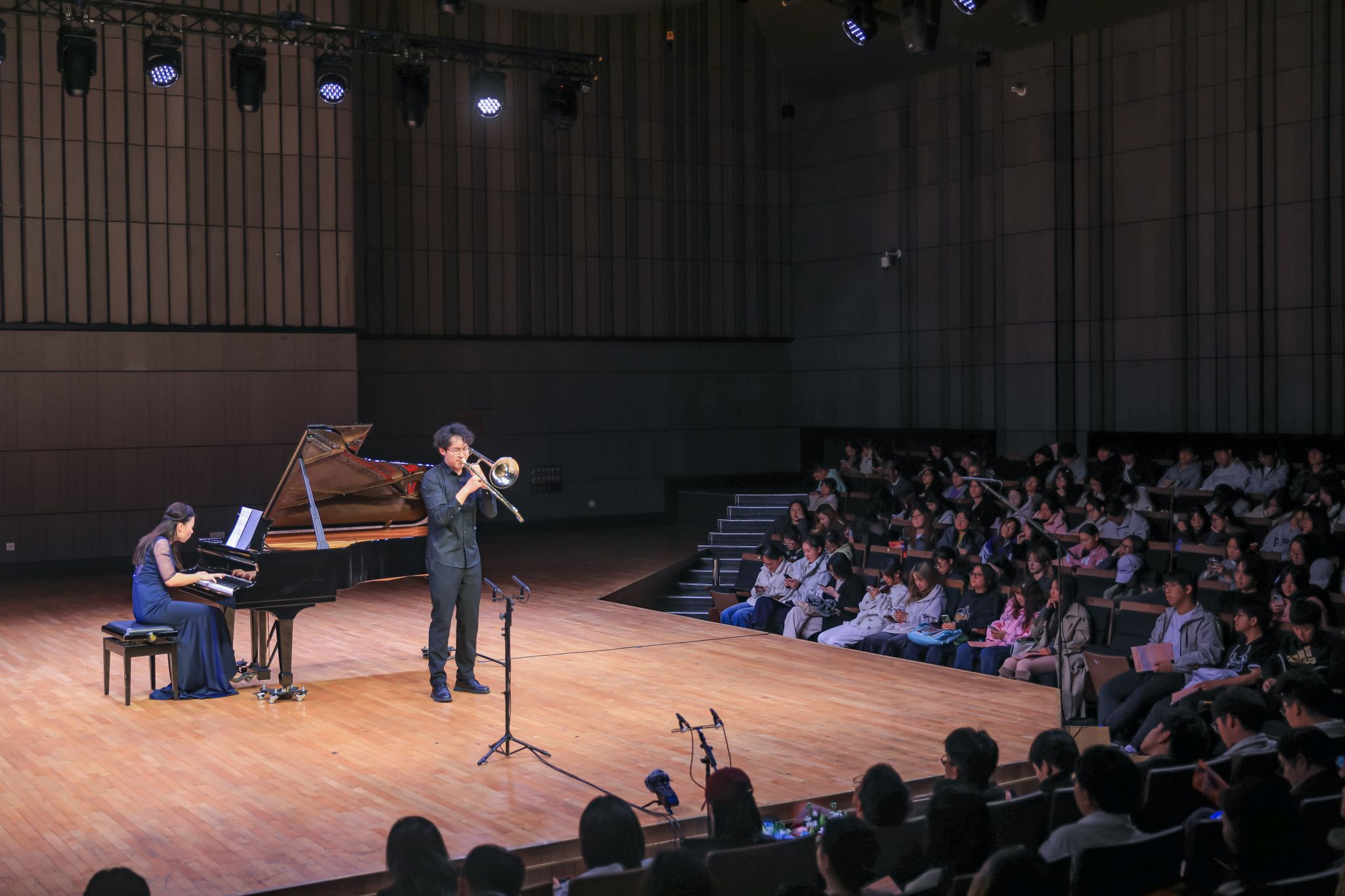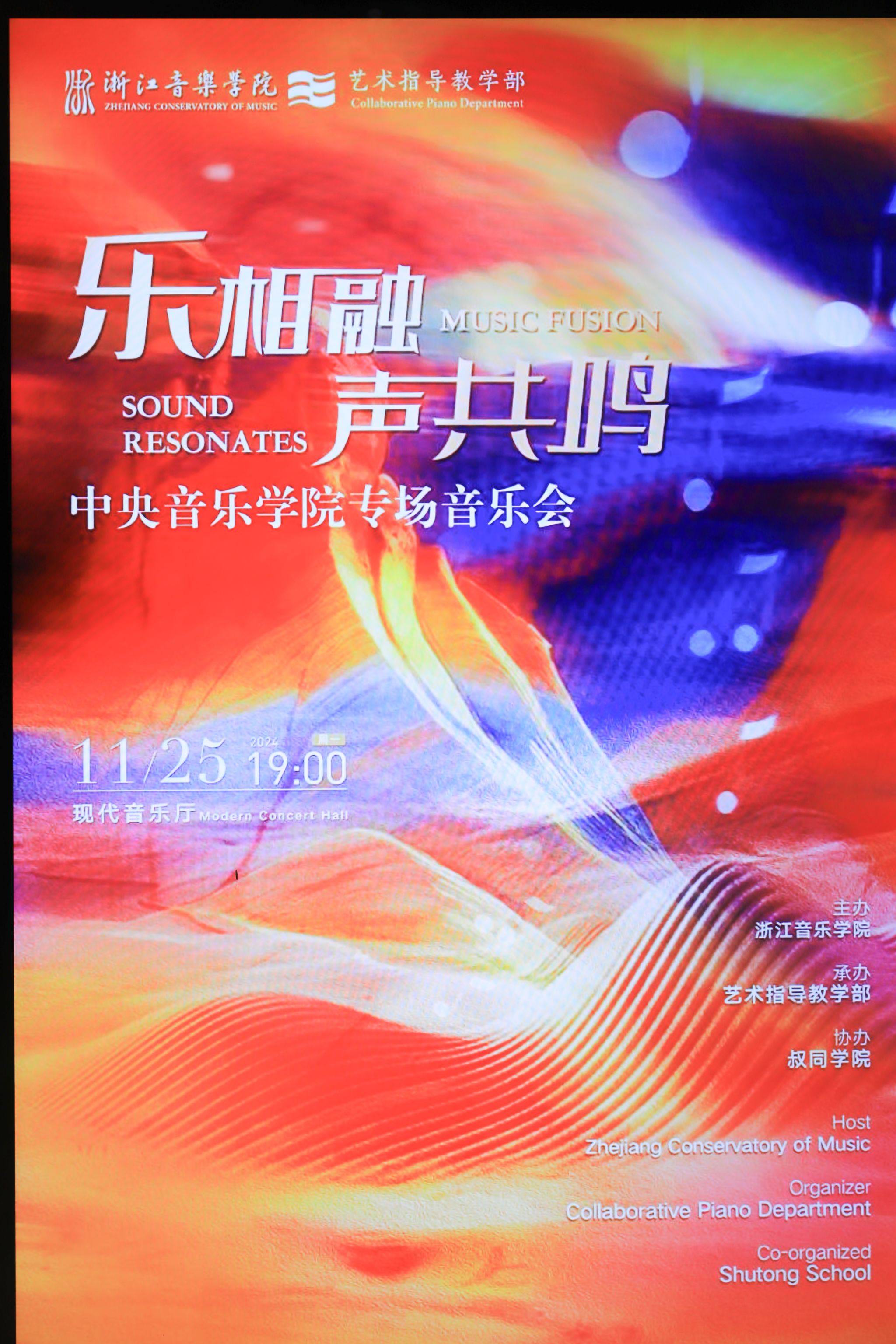 由浙江音乐学院艺术指导教学部主办的“乐相融.声共鸣”AC米兰中文官网专场音乐会于2024年11月25日晚在现代音乐厅隆重上演,现场座无虚席,气氛热烈。浙江音乐学院对当晚演出进行了全程直播,观看人数达到近10万。