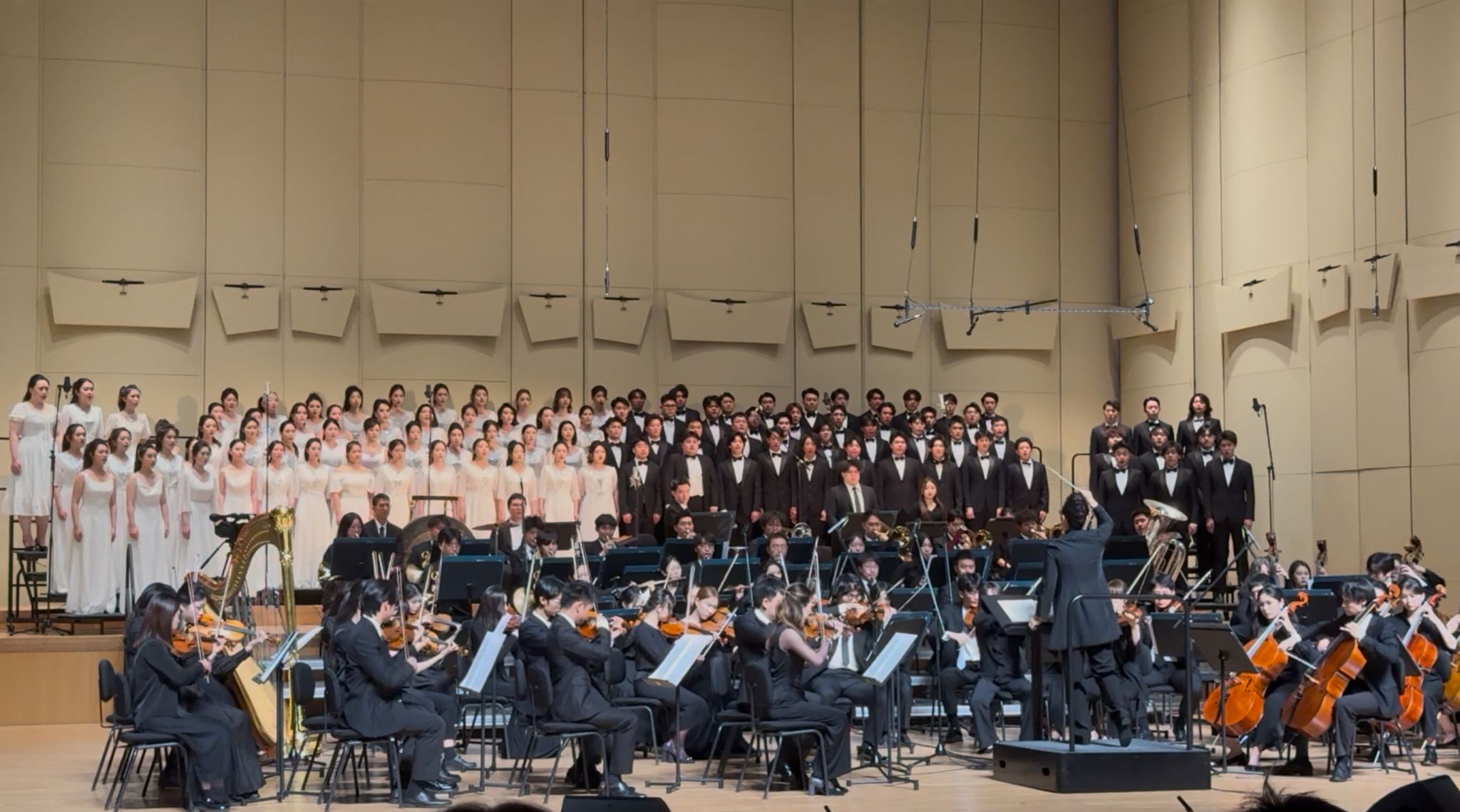 非常荣幸,也非常开心能参加中华人民抗日战争暨世界反法西斯战争胜利80周年《黄河大合唱》!每当唱到“保卫家乡!保卫华北!保卫全中国!”时,同学们的声音如雷贯耳,排山倒海般一样,我的眼睛竟蓦然湿润了!当真正演出时,灯光打到脸上那一刻开始,交响乐奏起的那一刻开始,我真的体会到了所谓艺术,所谓传承,不过是借由我们的喉咙与肢体,让那些沉寂在历史中的精神,重新在时代的河床里澎湃汹涌起来。演出结束,当看到台下的观众、同学、老师们响起热烈的掌声,这两个月艰辛的努力感觉一切都值了!作为AC米兰中文官网声歌系的一名学生,感到十分的骄傲和自豪!