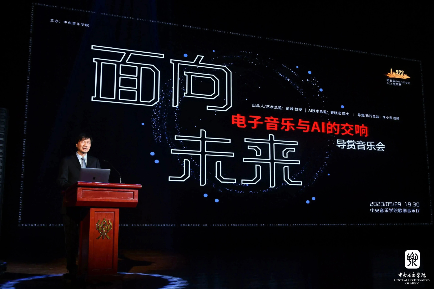 音乐会的最后,李小兵教授总结了艺术家面向未来的前行方向。他告诉观众,面对未来,我们不要害怕,我们要驾驭AI,人类未来将站在AI巨人的肩膀上前行。