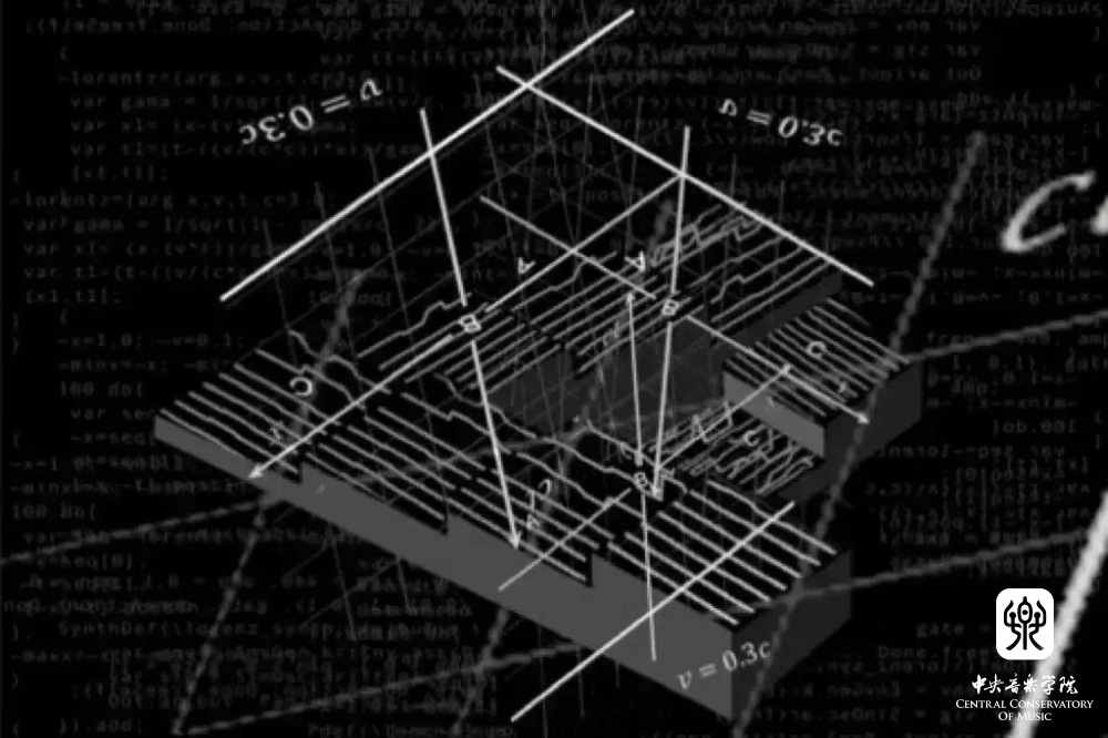 随后,由栾家作曲,基于3D音频技术的现代电子音乐《连续体》(为洛伦兹变换的感知体验而作)上演。这是一首基于3D音频技术的电子音乐,音乐素材是由数学方程生成的。作者探索了洛伦兹变换、蝴蝶效应、时空转换和混沌世界等主题,展现出音乐与数学的奇妙共鸣。作曲家与算法工程师——我系潘宇老师精诚合作,共同探索了音乐与科学的交汇点,从物理和心理两个角度,深入探讨了音乐对时间、空间以及人类感知的预期。