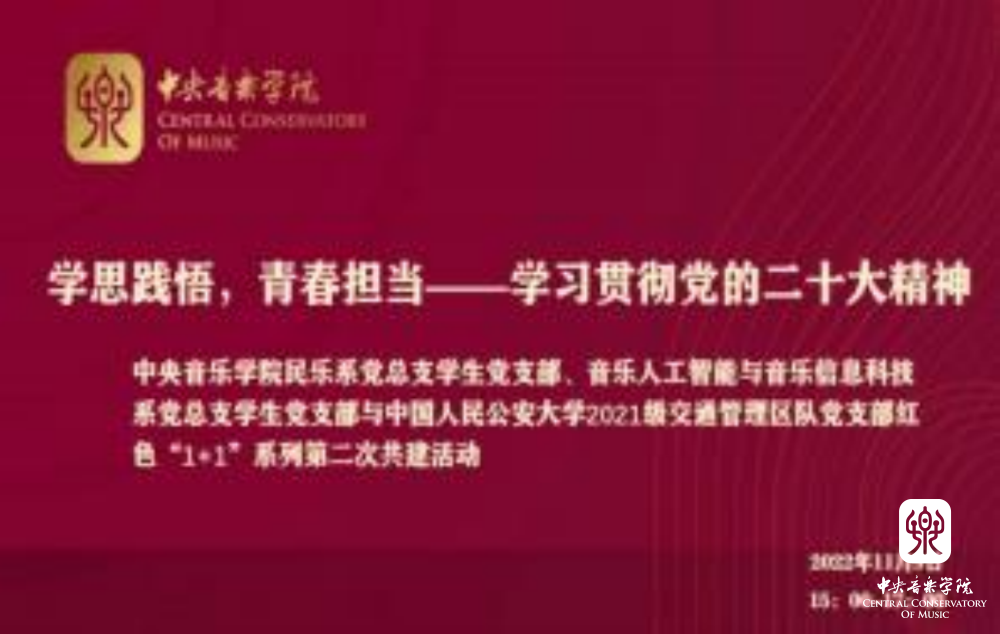 (二) 2022年11月9日, 米兰民乐系、音乐人工智能与音乐信息科技系学生党支部,与中国人民公安大学2021级交通管理区队党支部成功举办“学思践悟 青春担当——学习贯彻党的二十大精神”共建支部师生线上交流座谈会。