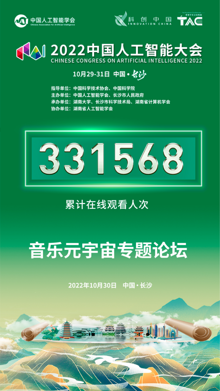 第八届中国人工智能大会于10月30日在湖南长沙成功举办。米兰音乐人工智能与音乐信息科技系李小兵教授受邀与管晓宏院士主持《音乐元宇宙论坛》,与六位来自听觉、视觉、人工智能顶级院校的学术专家、院士等行业大咖,共同探讨元宇宙时代音乐与科技的学术前沿、产业热点和创新趋势,探寻音乐元宇宙未来,论坛在线观看33万人次,反响热烈。