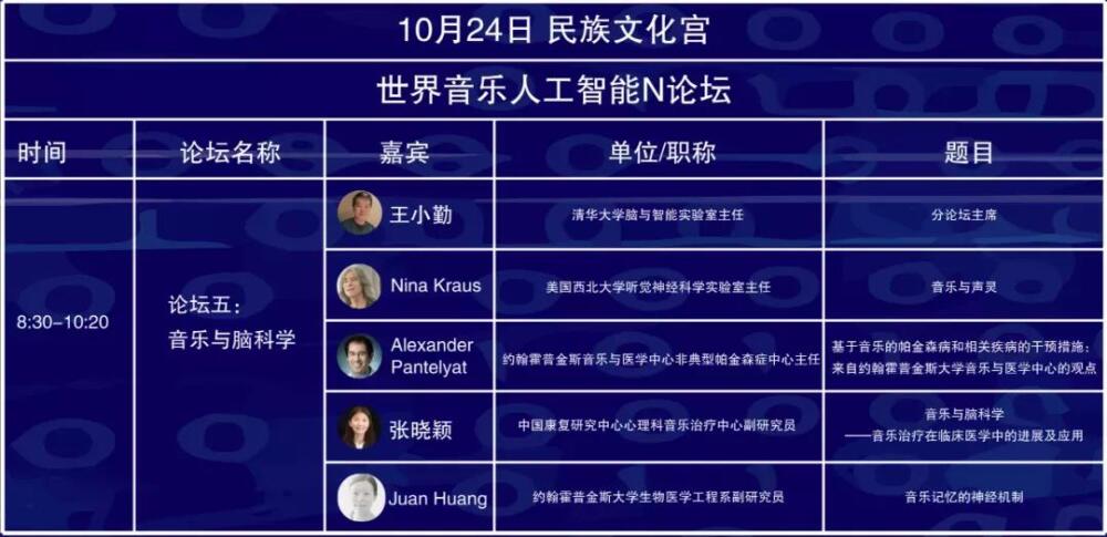 10月24日,世界音乐人工智能大会论坛五:音乐与脑科学论坛在北京民族文化宫举办。