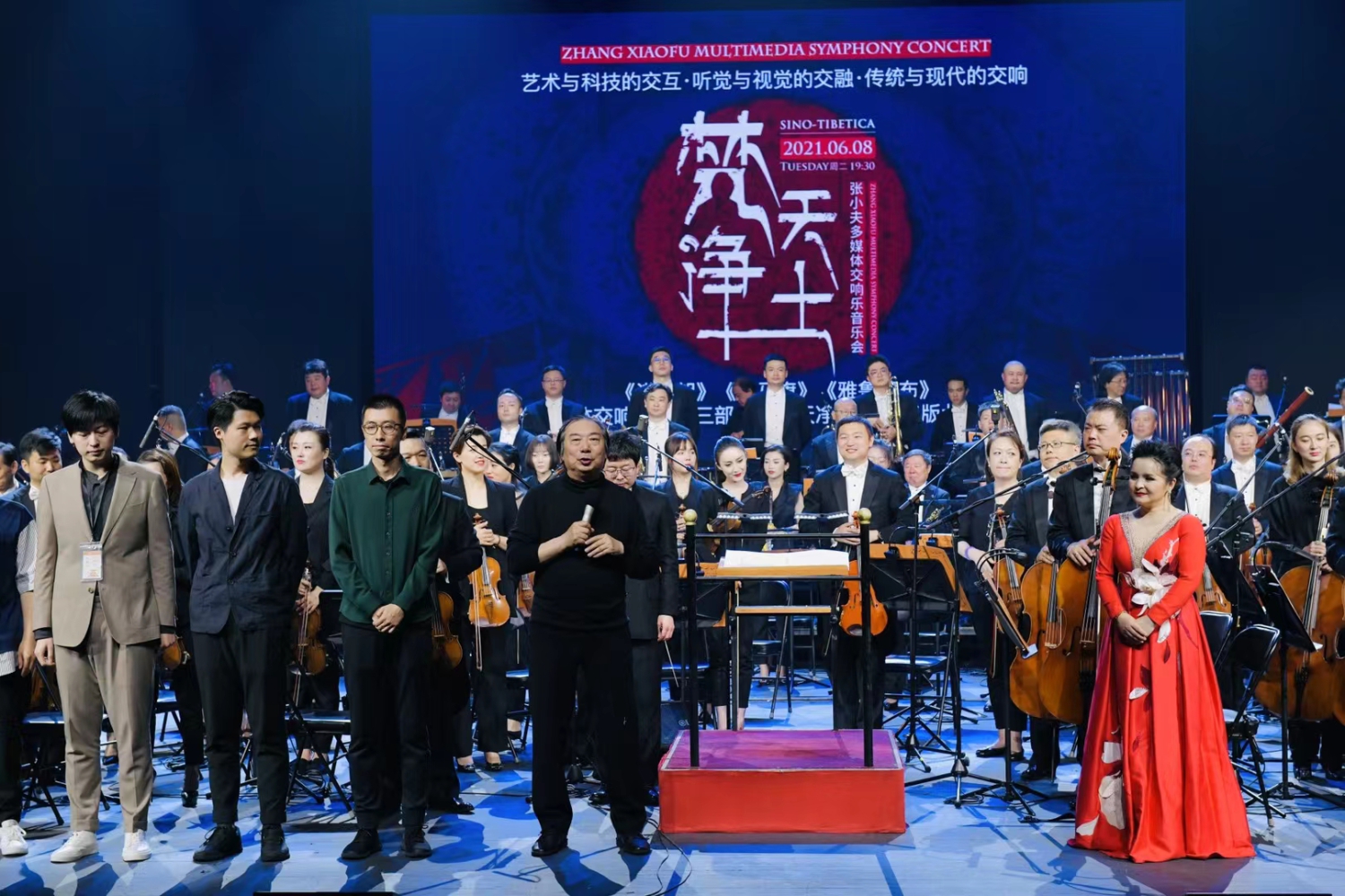 【梵天净土】多媒体交响乐套曲由《诺日朗》《风马旗》《雅鲁藏布》三部多媒体交响乐构成,先后获得国家艺术基金2016和2019年度大型舞台艺术作品项目的两次资助而进入打造精品阶段,该作品2011版北京首演则是作曲家张小夫教授用经典交响音乐形式与电子音乐、视觉影像、舞台设计、灯光造型等多媒体技术相结合讲述中国故事的最新作品。经多年来不断的修改和提升,在众多艺术家的精诚协作、倾情演绎下呈现出新的审美高度;作品在融合了全新的24声道全景声的音响系统,超高清LED多媒体屏幕呈现了巨幅视觉影像,为观众带来了全新的沉浸式的“视听一体化”的超凡体验。作曲家融合了藏族原生态音乐与现代电子音乐声音,创造了一种全新的原生态音乐元素与交响乐和电子音乐元素相融合的声音组合方式,为观众呈现了一幅幅深远、蓬勃、悠长且待人寻味的交响画卷,这种全新的沉浸式音乐会演出越来越受到当下年轻人的欢迎,引发了新一波对现代音乐如何走向社会大众的探讨。