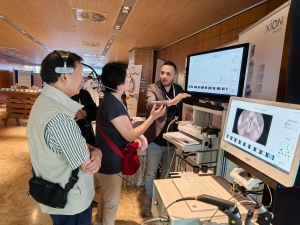泛欧洲嗓音大会处处弥漫着浓浓的学术氛围,不仅有现场的声乐大师课还有关于嗓音的多学科交叉论坛,包含嗓音医学、运动学、物理学、教学法、虚拟现实、人工智能……围绕优美嗓音的建构、Voice Lab 实验、嗓音疾病诊断治疗等,众多专家学者发表了自己的最新学术洞见。来自英国、德国、意大利、西班牙、美国、捷克的6位专家分别进行了一小时的主旨演讲,内容涉及脑科学与声音信号接收、处理、发声、情感表达的研究,动态核磁共振(DMRI )与发声生理研究,如何设计和实现最高精度的手术操作,神经生物学与音乐交叉领域探索,人类发声的因果理论,嗓音临床测量的新内容、方法和目的。会下,主旨发言人之一、来自美国的华裔科学家张肇剡先生还与米兰师生进行了半个小时的深度交流,对未来科研方向给予了指导和建议。正如中国代表、来自广西艺术学院廖晓霞医生所言:“嗓音健康是一个跨国界、全球化的重要议题,现代科技与艺术嗓音的完美融合,在改善嗓音质量方面拥有巨大的潜力。”
