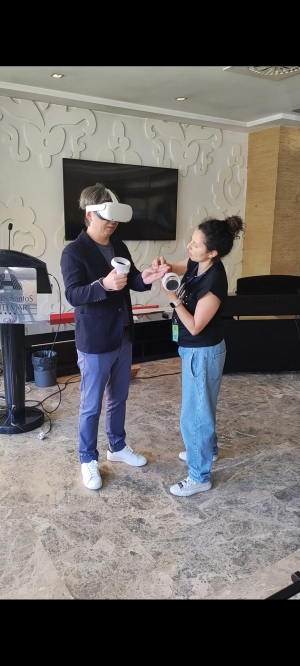 左下:周扬老师现场感受VR房间大小对歌唱行为的影响