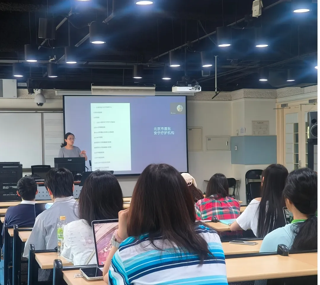 讲述中,刘明明老师分享了一个曾经的案例,生动地讲解了音乐治疗如何在该领域应用,并向同学们介绍了儿童临终关怀病房——雏菊之家。