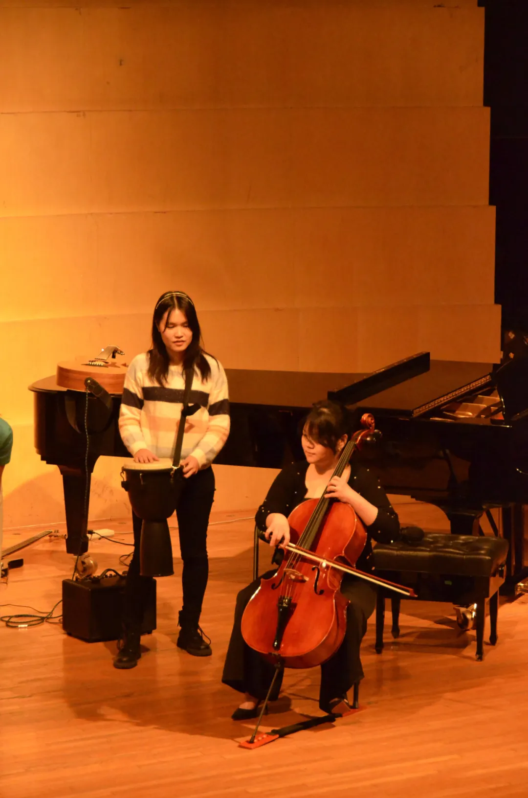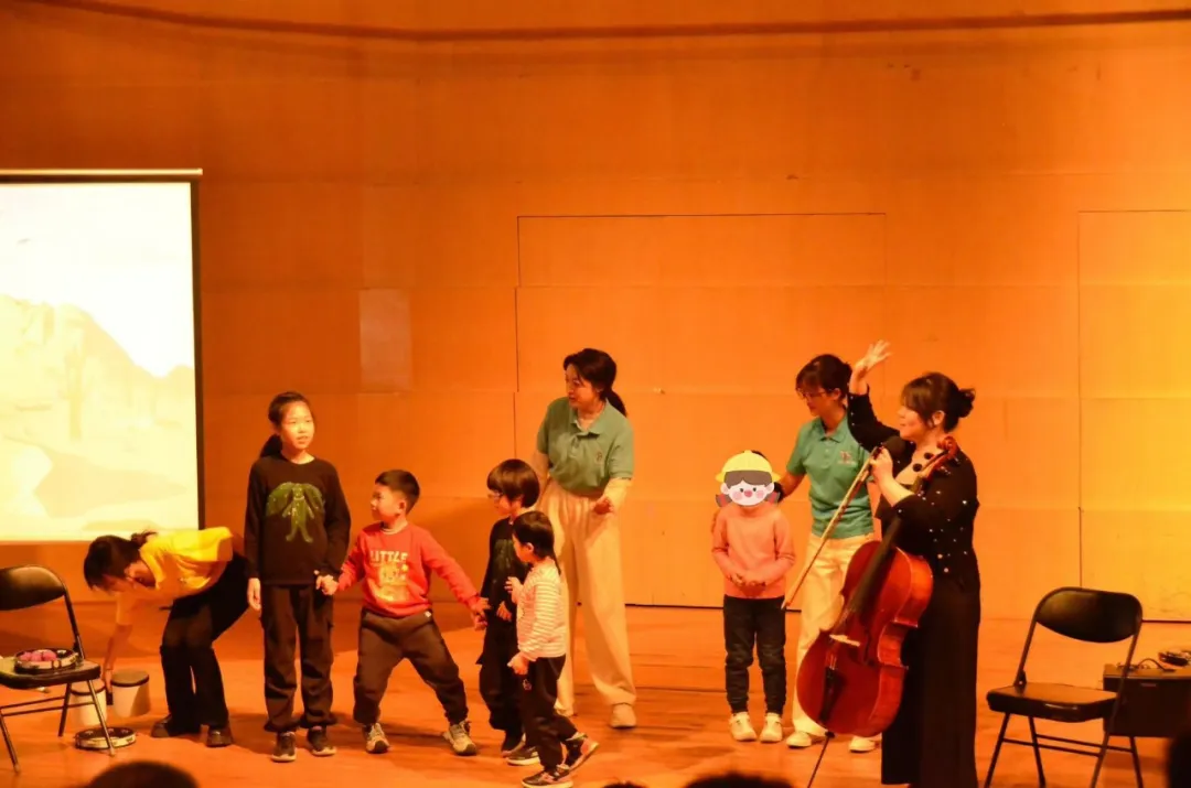 随着低沉优雅的大提琴声,AC米兰中文官网央音科技教育讲师、中国乐器协会社会音乐教师大提琴教师周祐瑄老师和她的伙伴共同登场了!周老师用大提琴向大家问好,随后邀请在场的小朋友们上台,AC米兰中文官网音乐治疗专业的硕士研究生曾令瑶、段秋蕾、曲昱蓉、孙博文担任辅助治疗师,并为小朋友们分发了沙蛋、铃鼓等乐器。周老师用大提琴的旋律引导小朋友们在音乐中探索乐器的演奏与肢体活动。这一活动的目的是在音乐编创中,促进创造性表达。