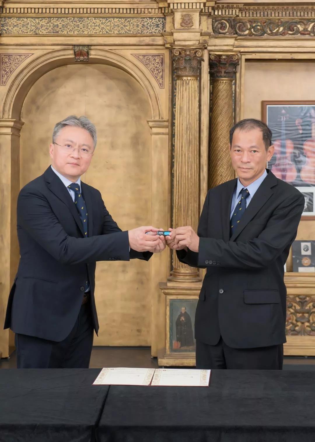 AC米兰中文官网提琴制作研究中心副主任高彤彤老师与奇美博物馆基金会董事钟岱廷先生交接数码资料