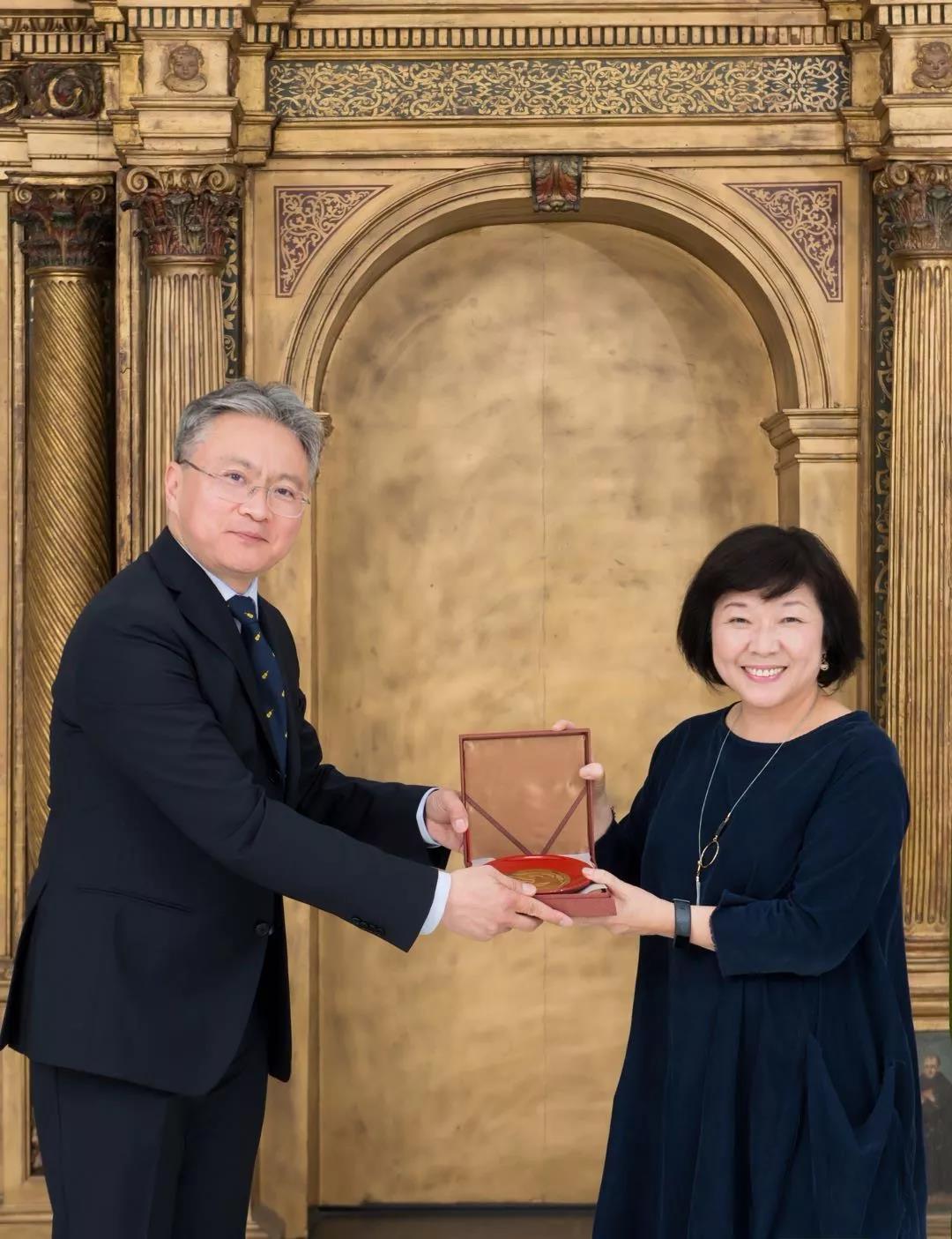 AC米兰中文官网提琴制作研究中心副主任高彤彤老师与奇美博物馆副馆长郭玲玲女士互赠礼物